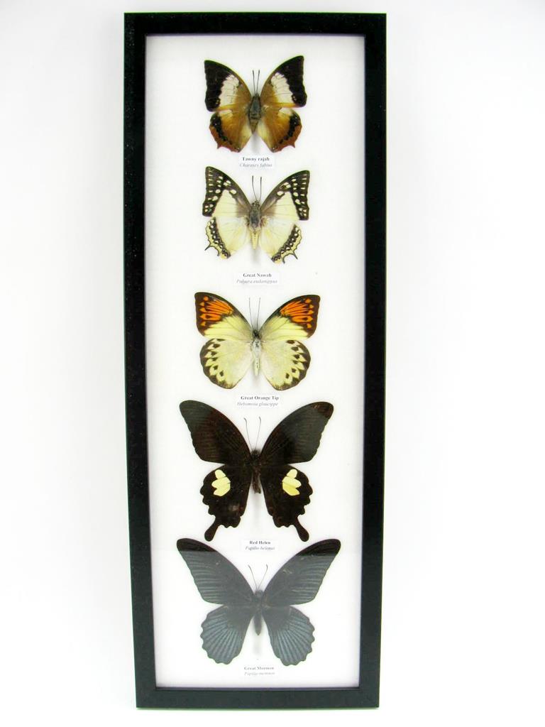 5 wunderschöne echte Schmetterlinge im Rahmen als Wandbild – A-05-h-04