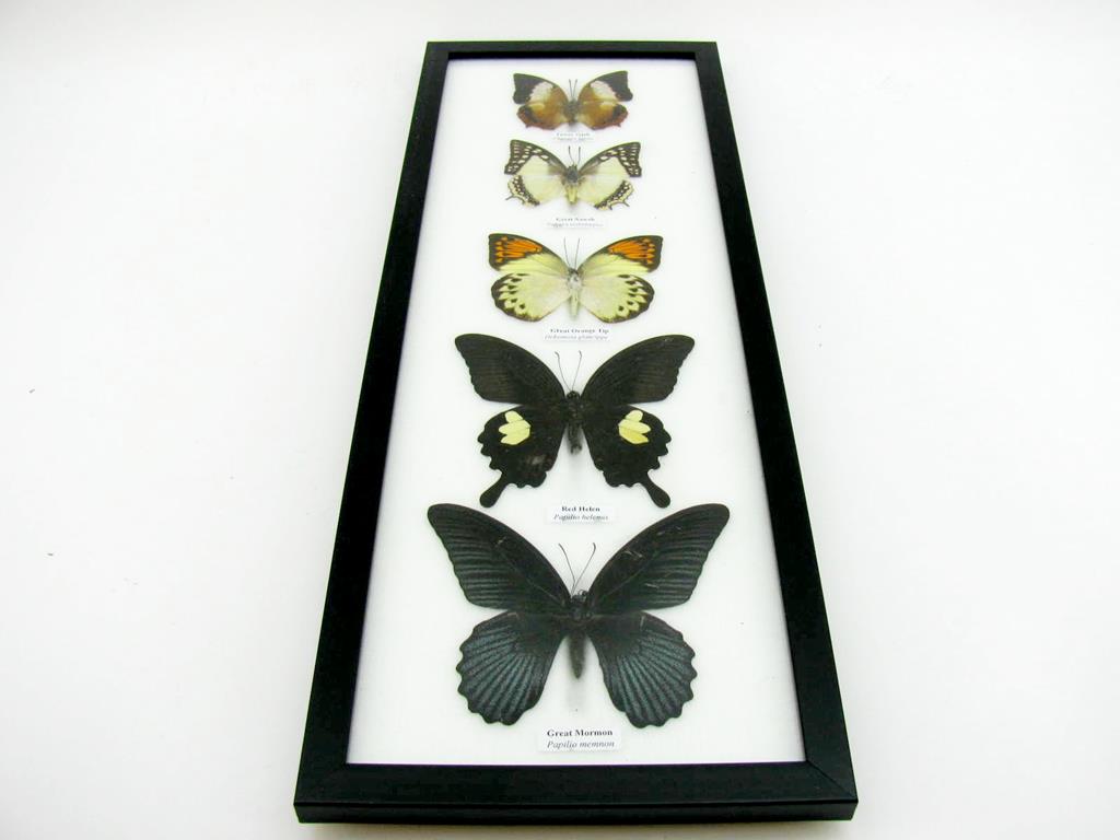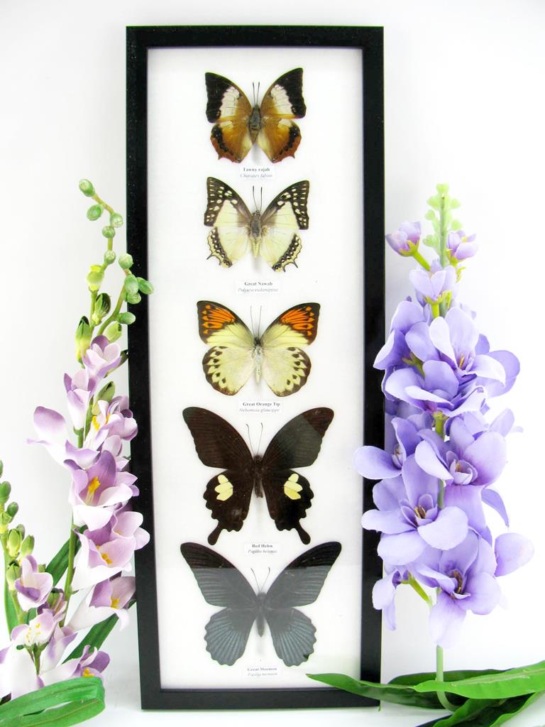 5 wunderschöne echte Schmetterlinge im Rahmen als Wandbild – A-05-h-08