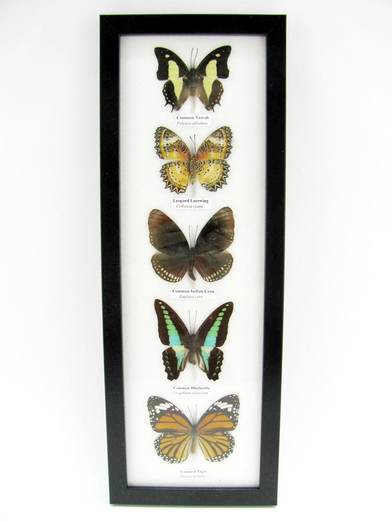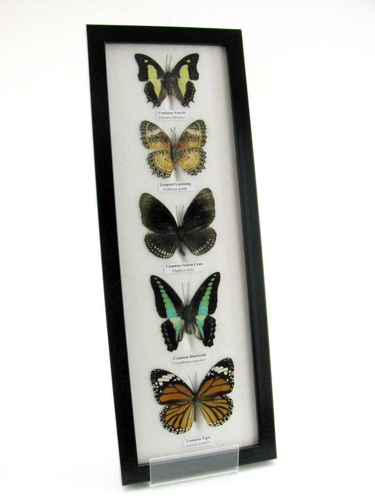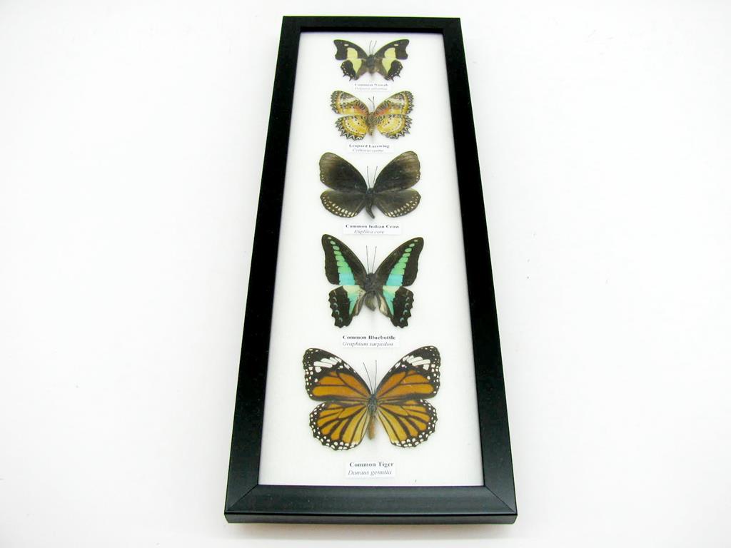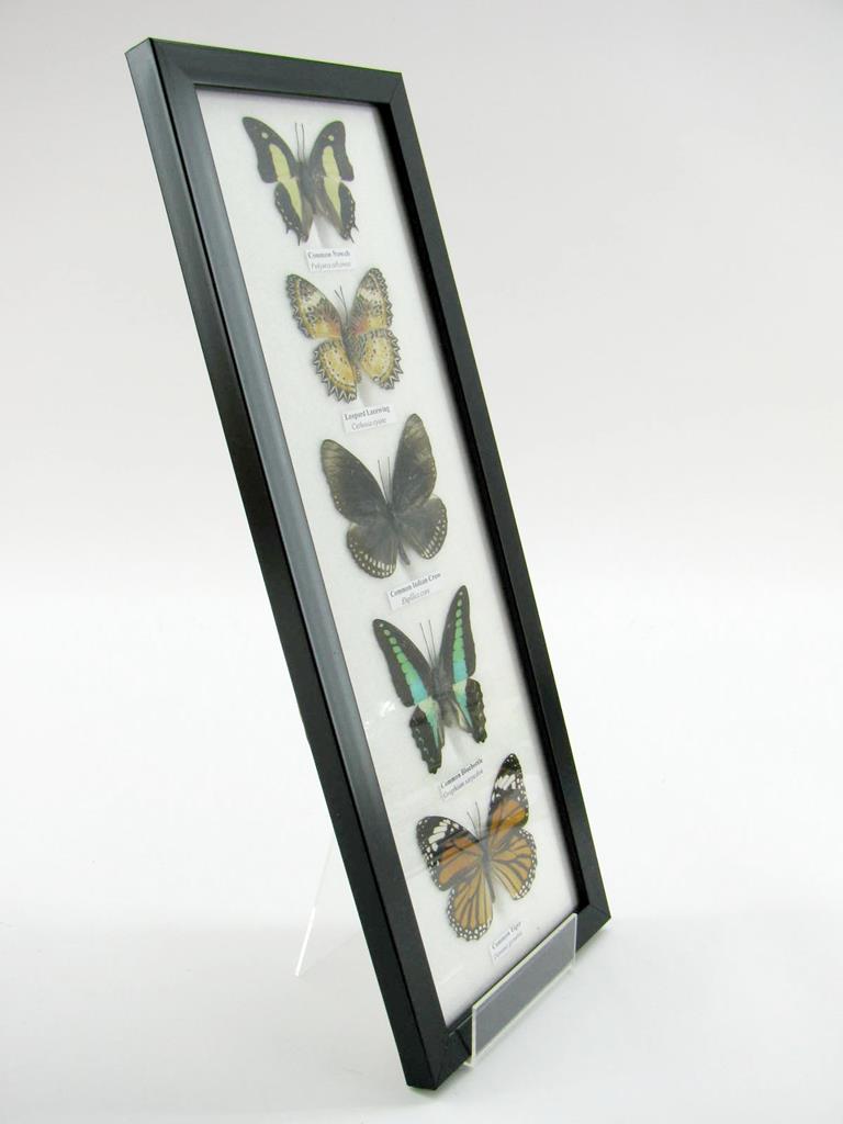 5 wunderschöne echte Schmetterlinge im Rahmen als Wandbild – A-05-h-01