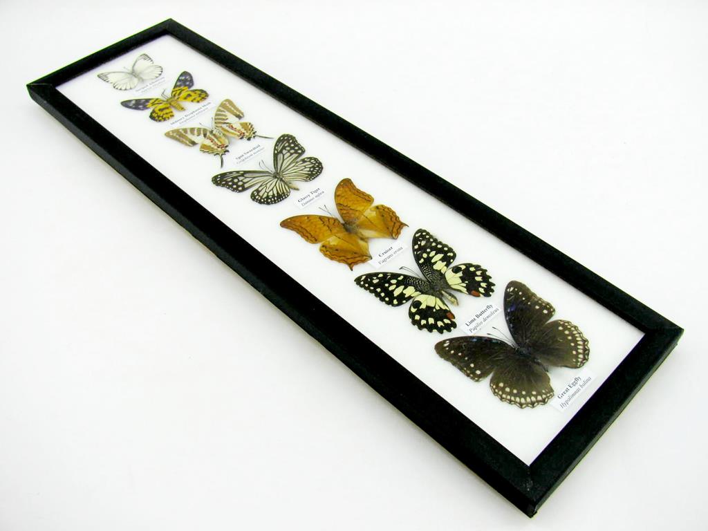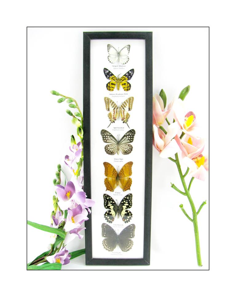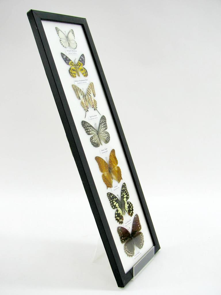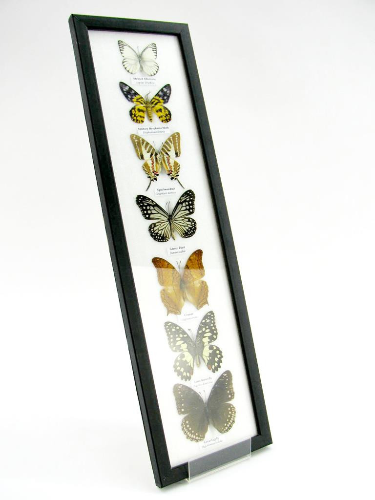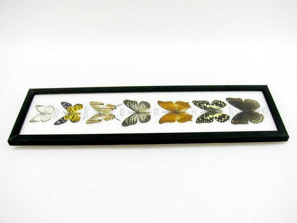 7 wunderschöne echte Schmetterlinge im schwarzen Rahmen als Wandbild – A-07-h-07