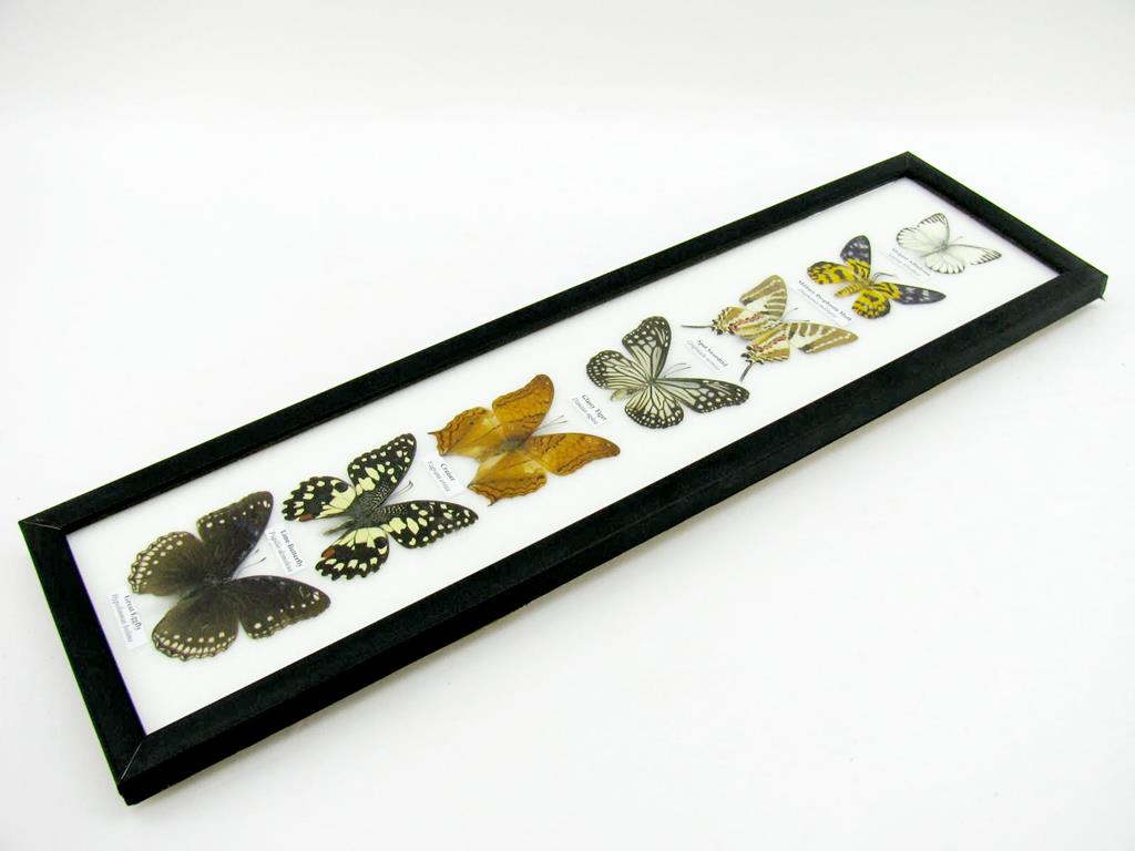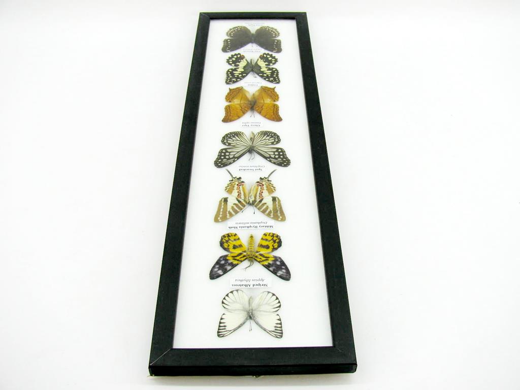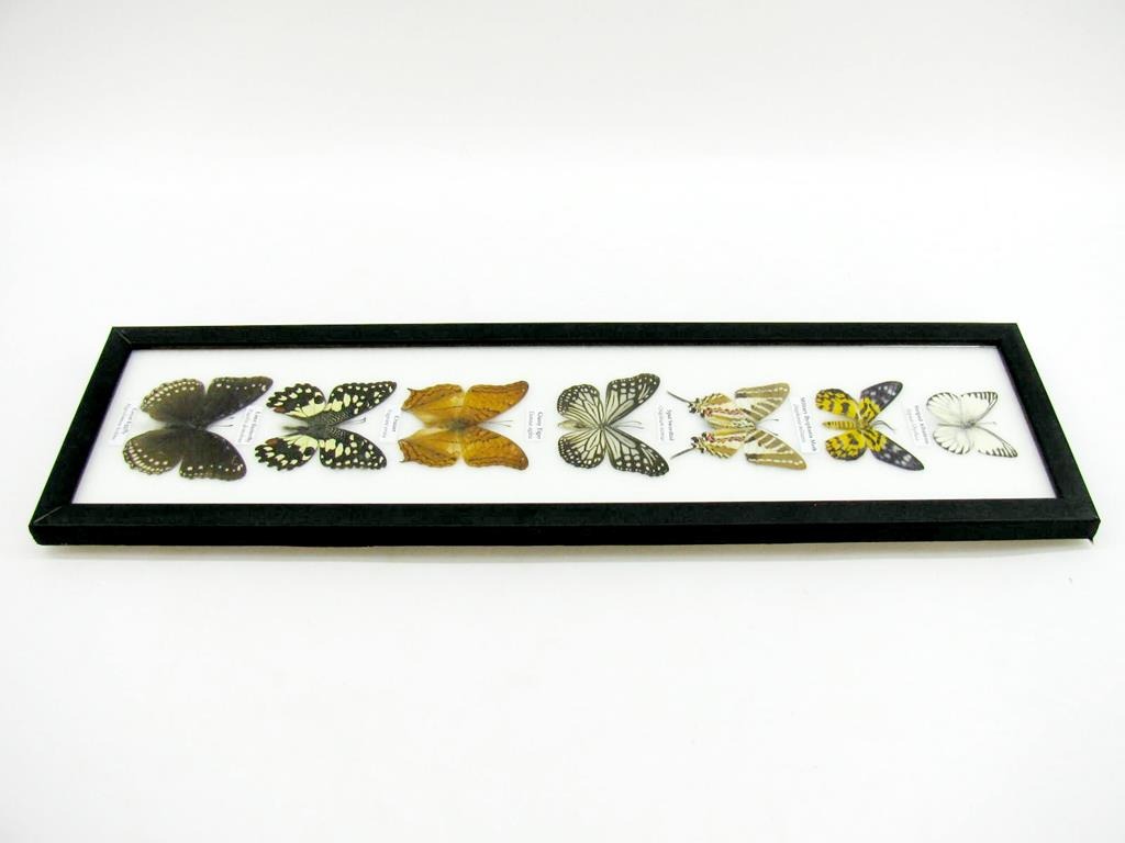 7 wunderschöne echte Schmetterlinge im schwarzen Rahmen als Wandbild – A-07-h-08