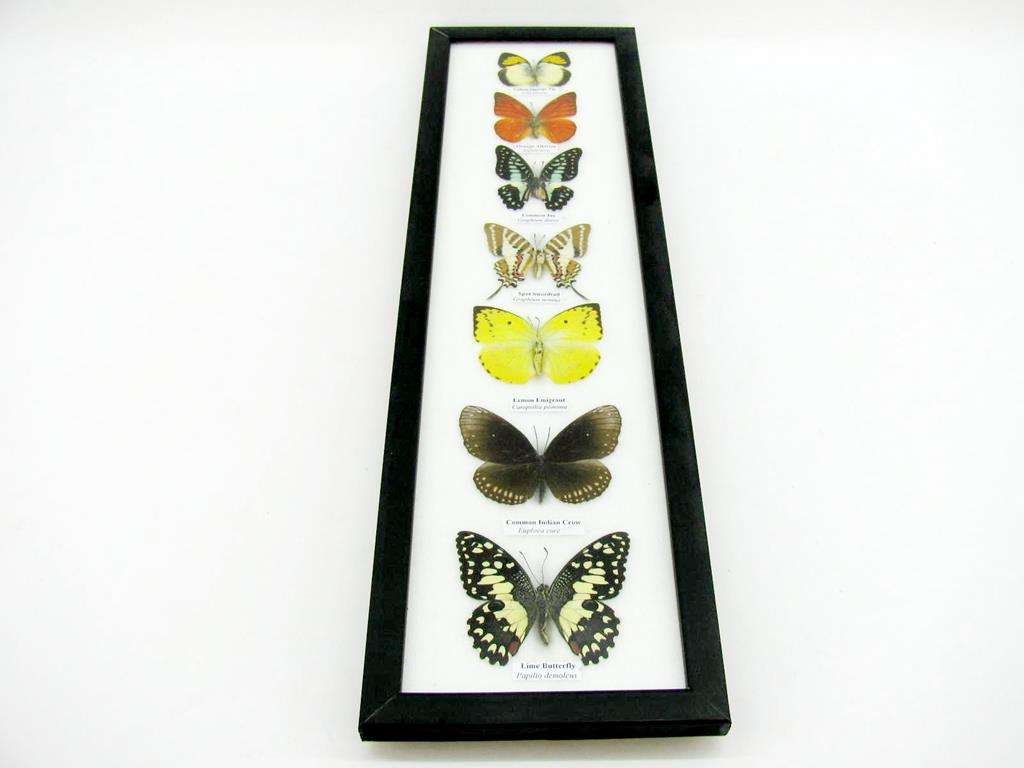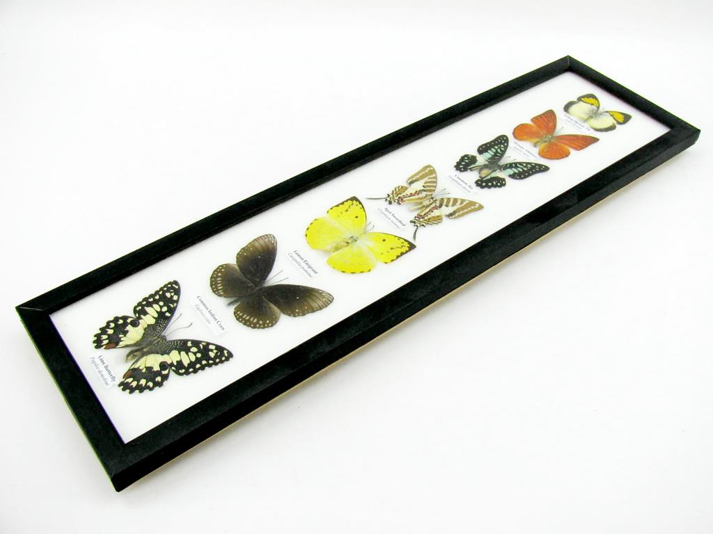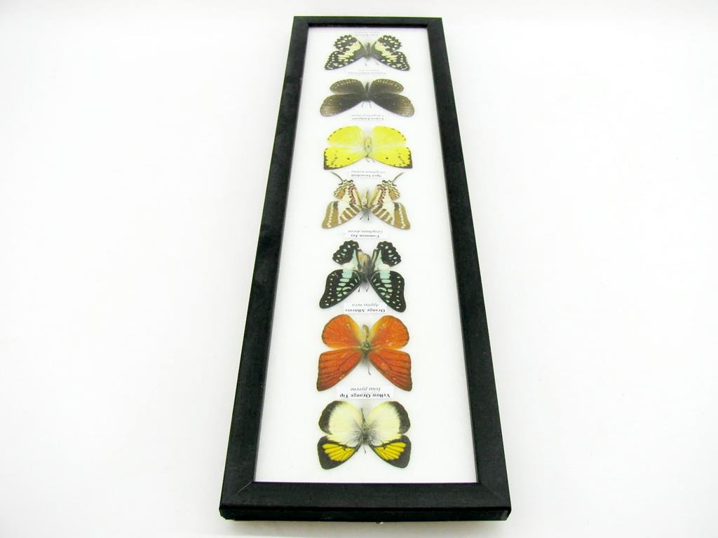 7 wunderschöne echte Schmetterlinge im schwarzen Rahmen als Wandbild – A-07-h-08