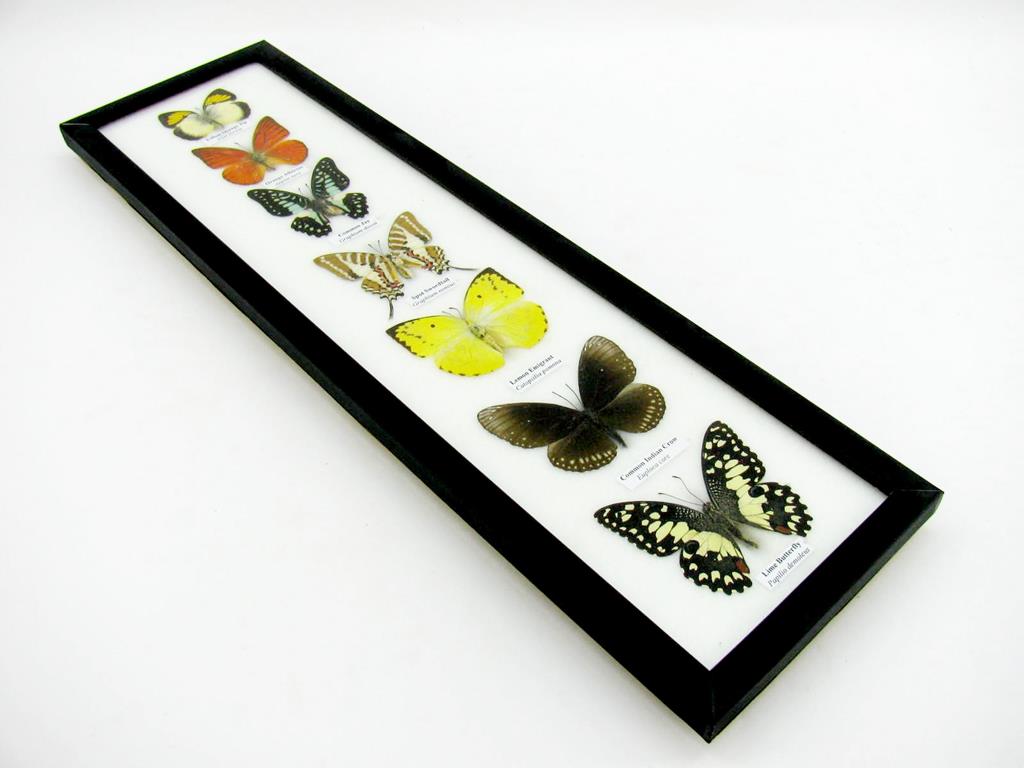 7 wunderschöne echte Schmetterlinge im schwarzen Rahmen als Wandbild – A-07-h-10