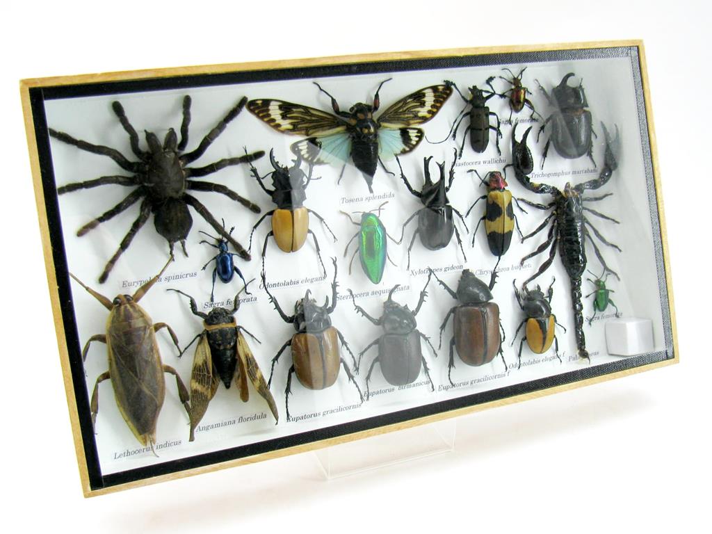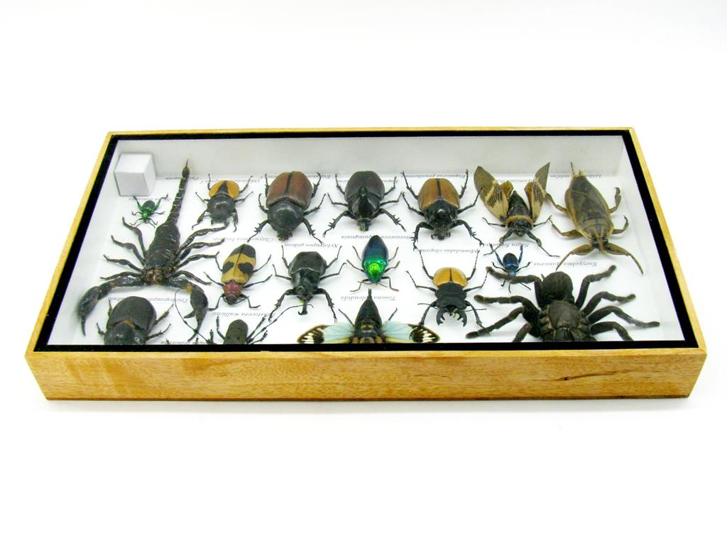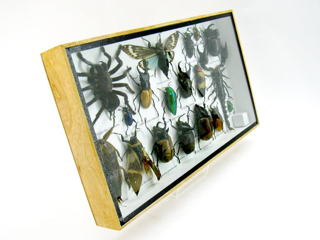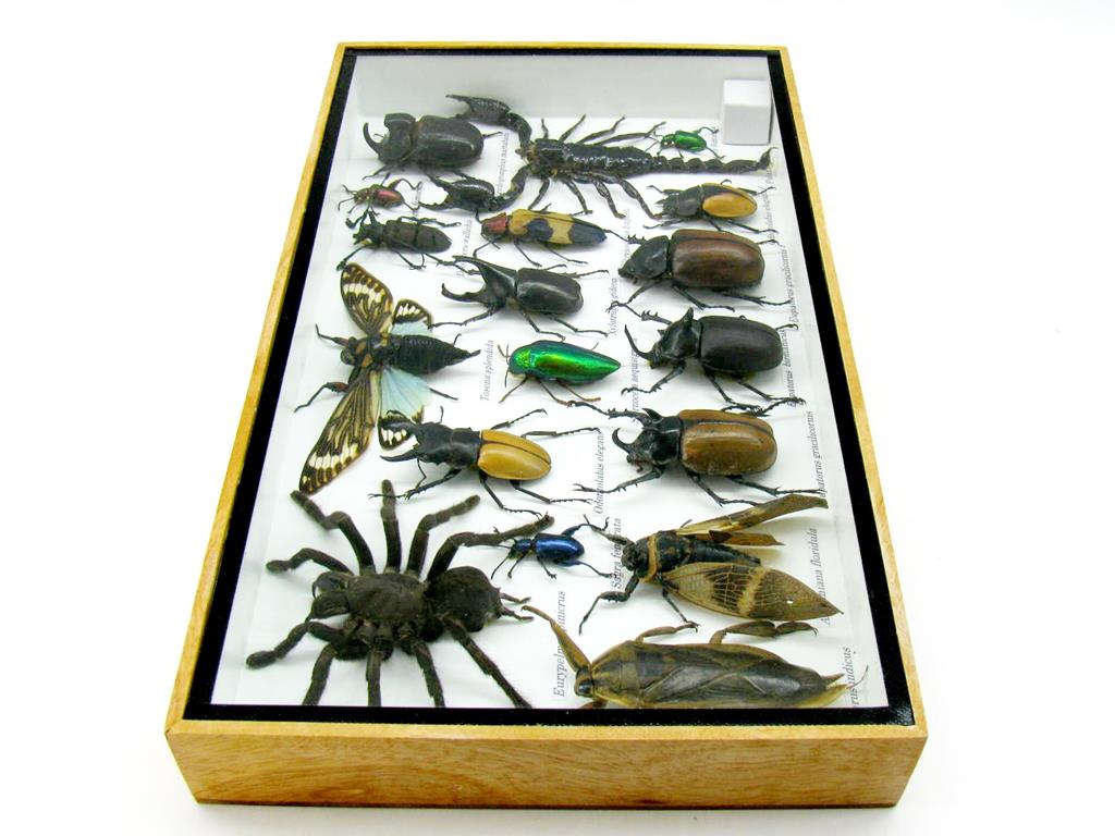 Echte exotische Insekten – einmalig – im XL Schaukasten aus Holz und Glas L19