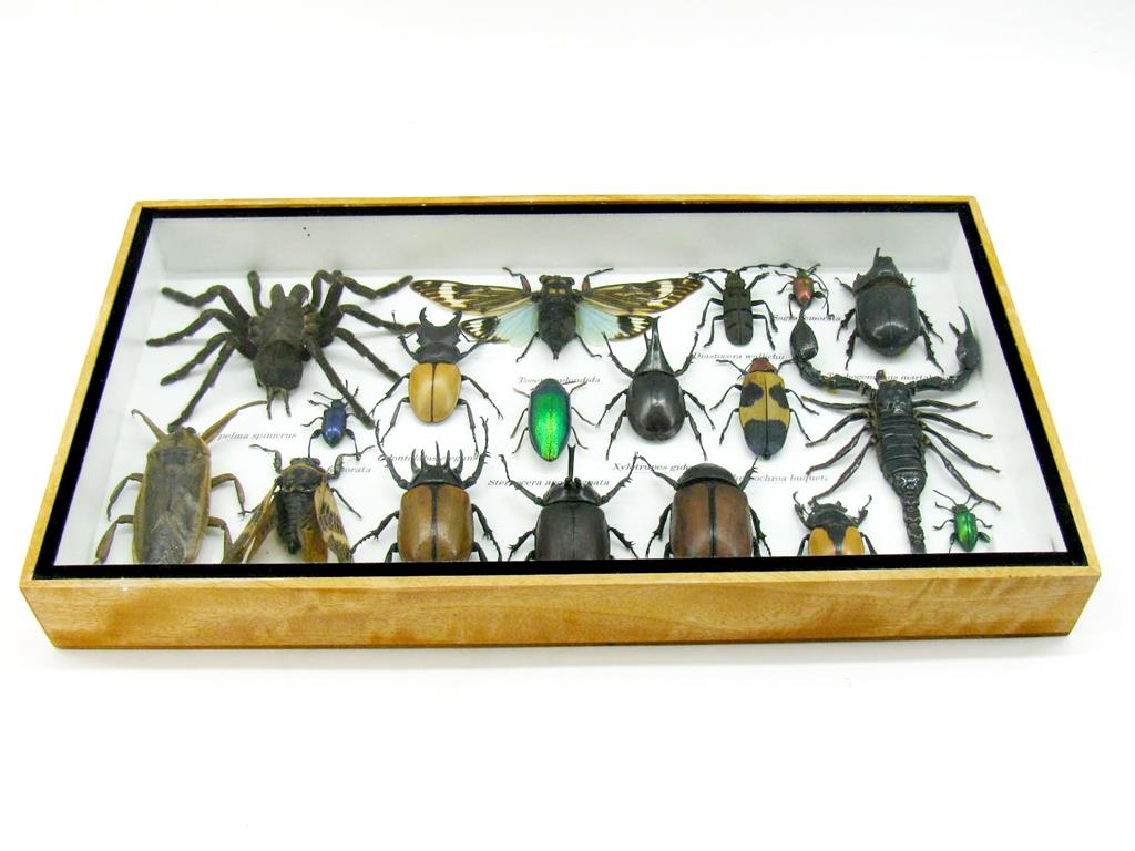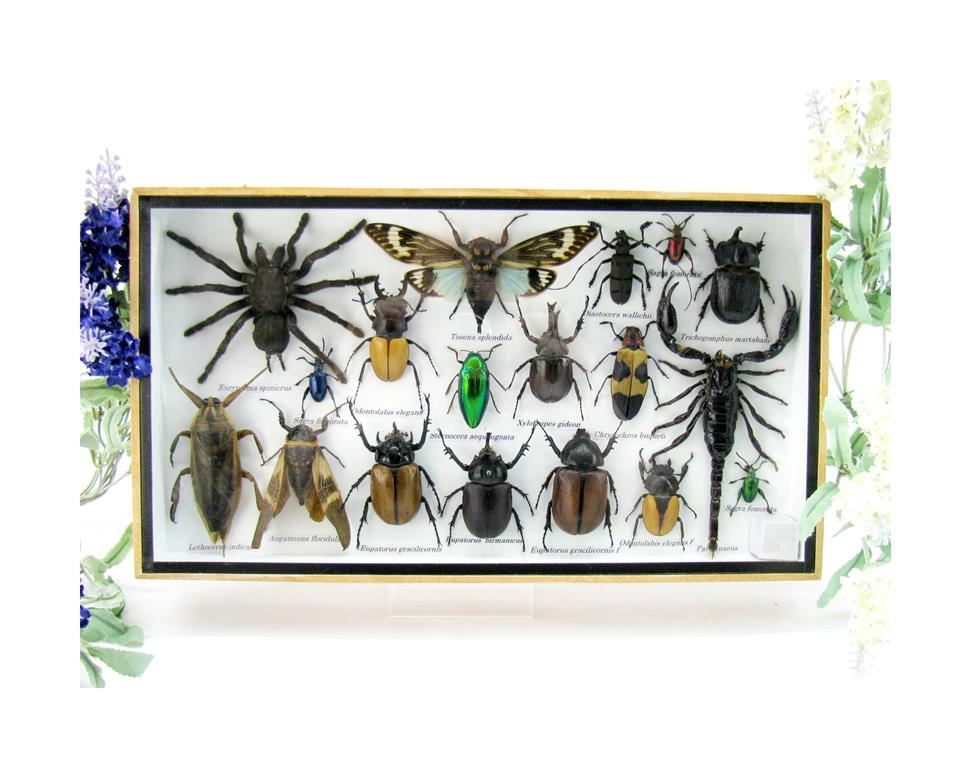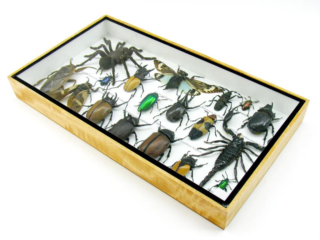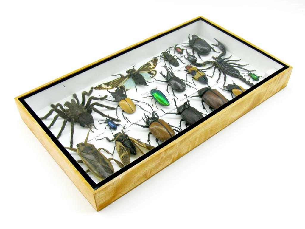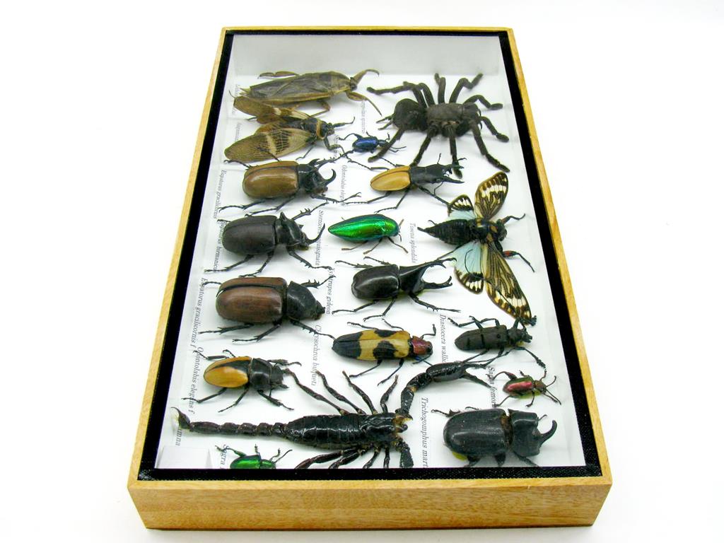 Echte exotische Insekten – einmalig – im XL Schaukasten aus Holz und Glas L19