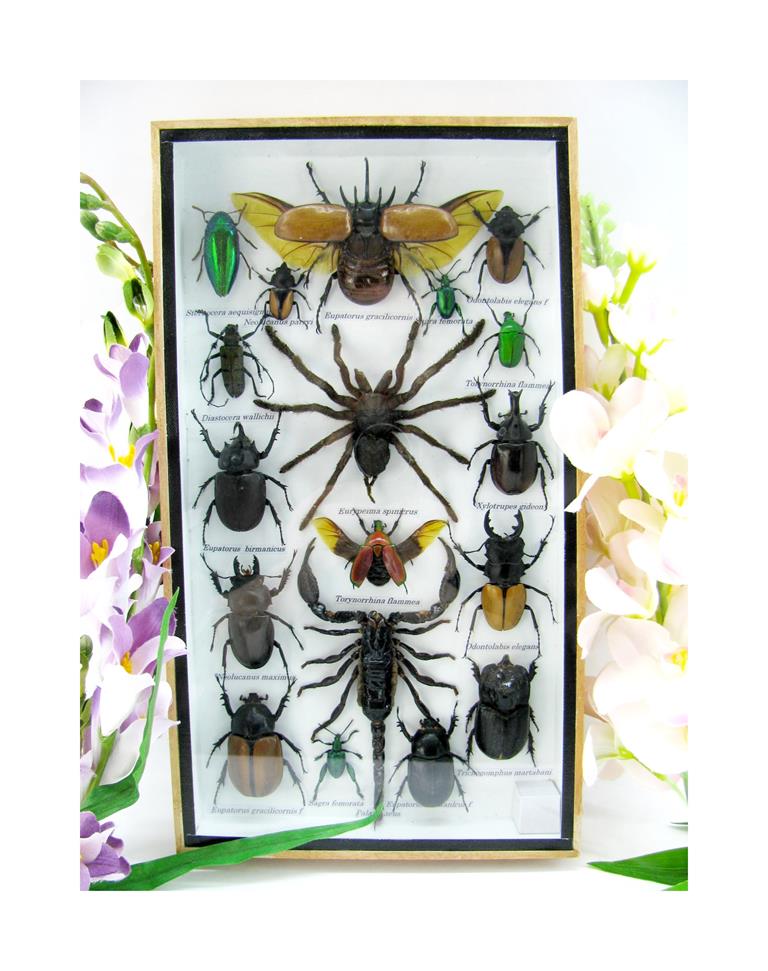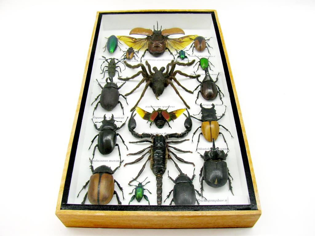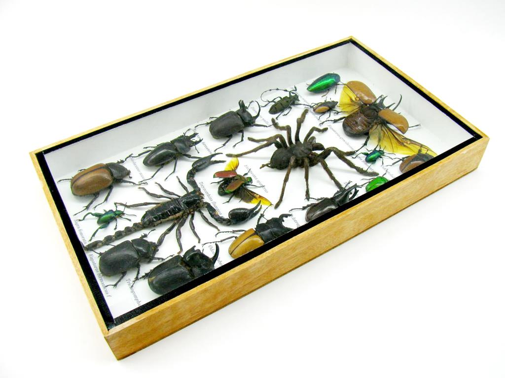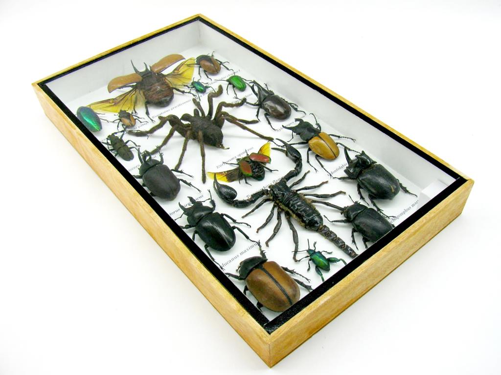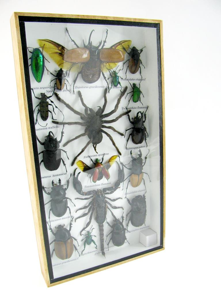 Echte exotische Insekten – einmalig – im XL Schaukasten aus Holz und Glas L20