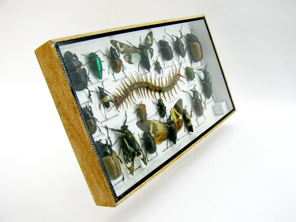 Echte exotische Insekten – einmalig – im XL Schaukasten aus Holz und Glas L18