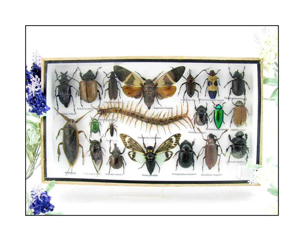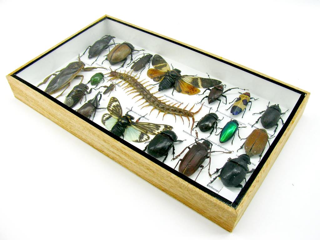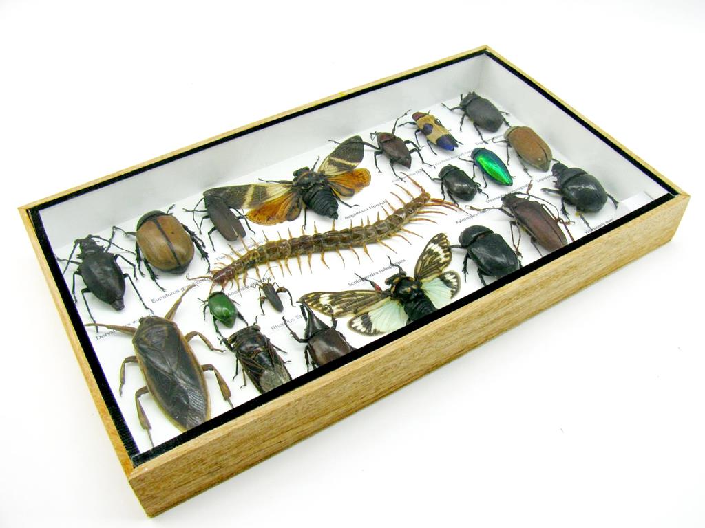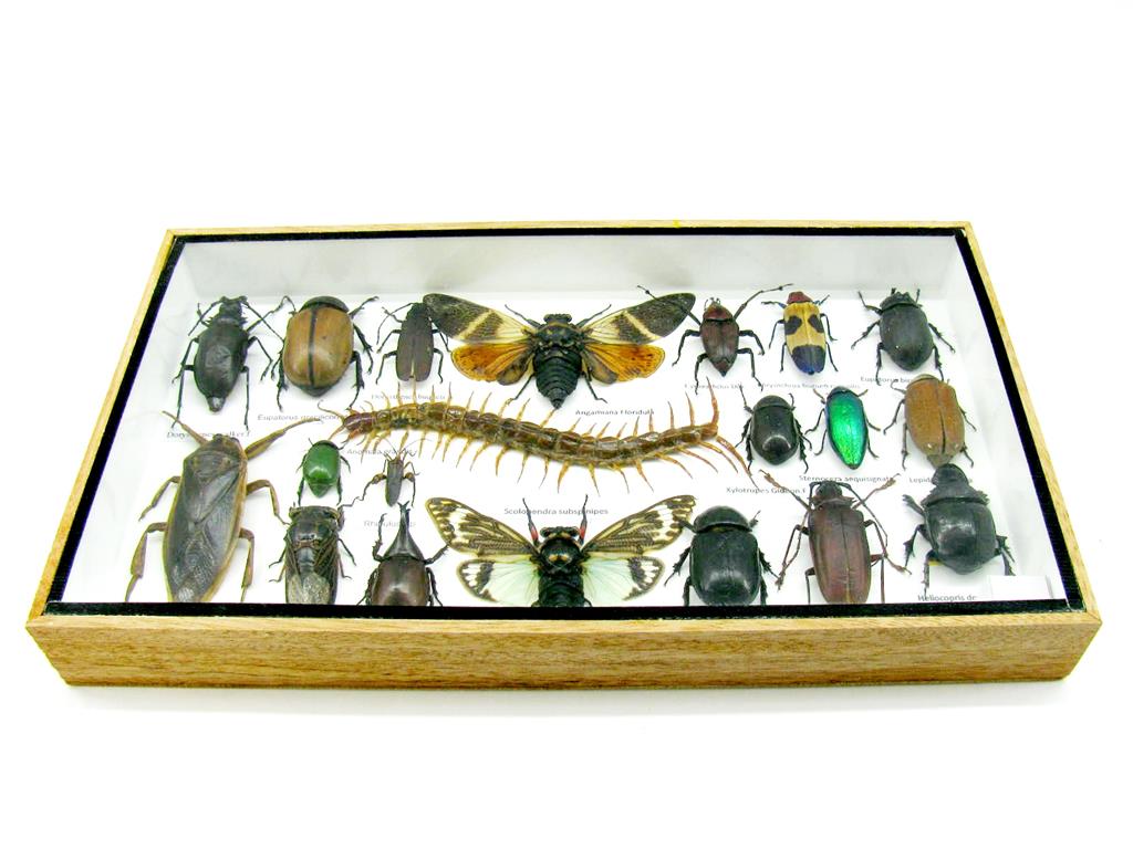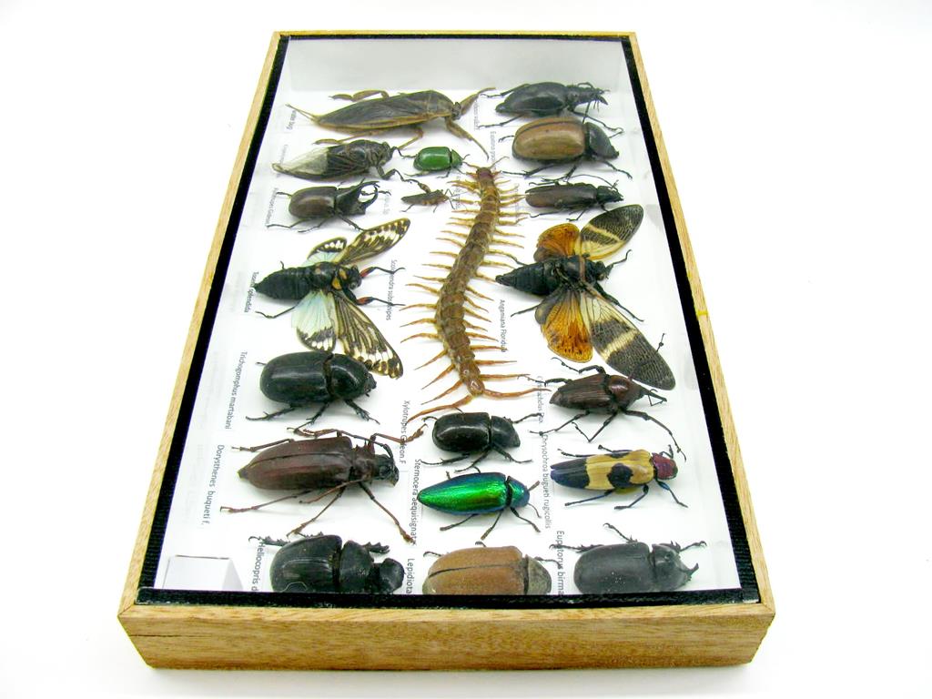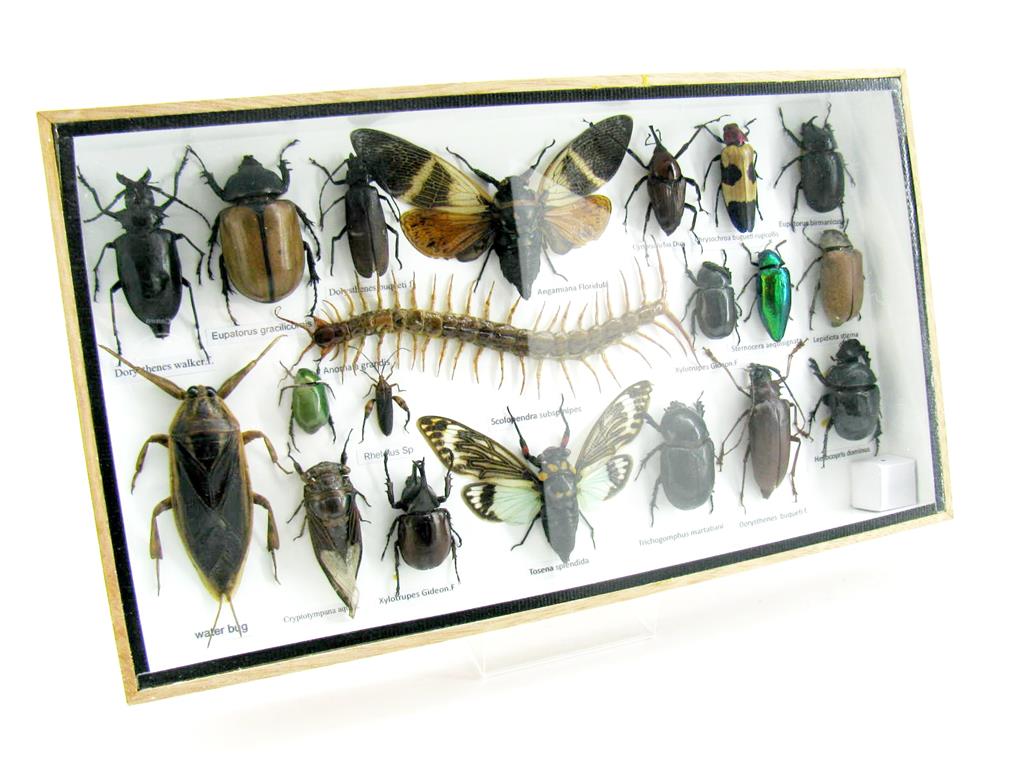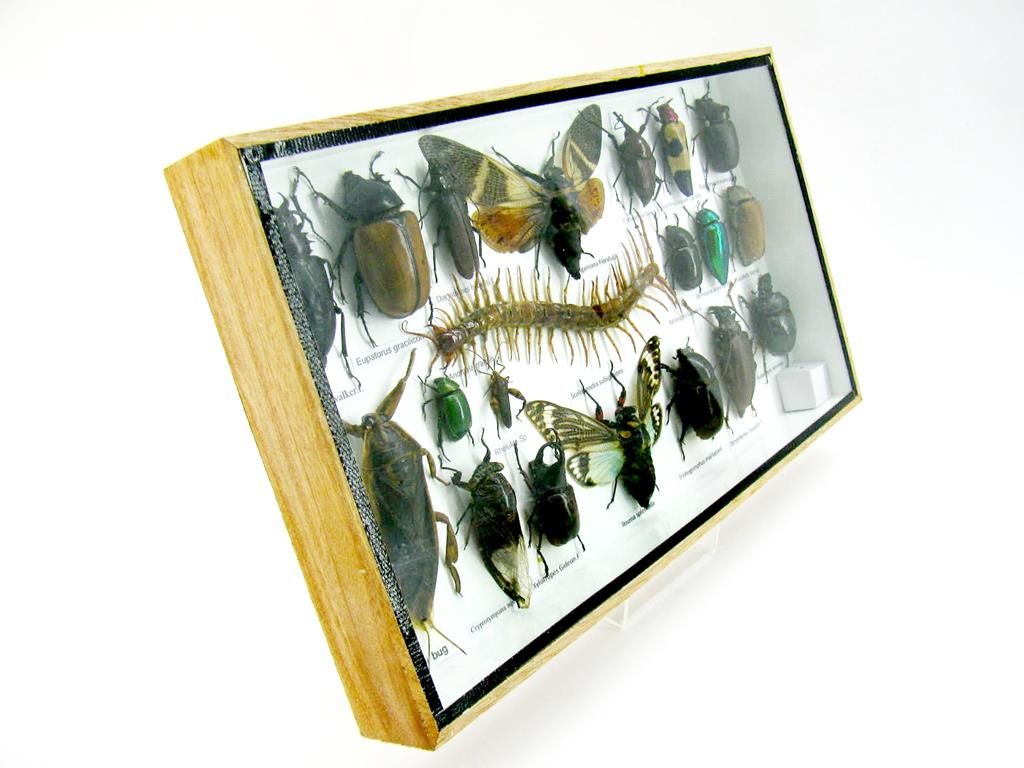 Echte exotische Insekten – einmalig – im XL Schaukasten aus Holz und Glas L19