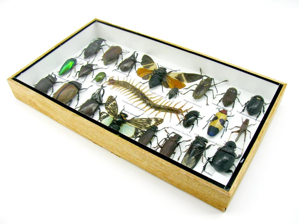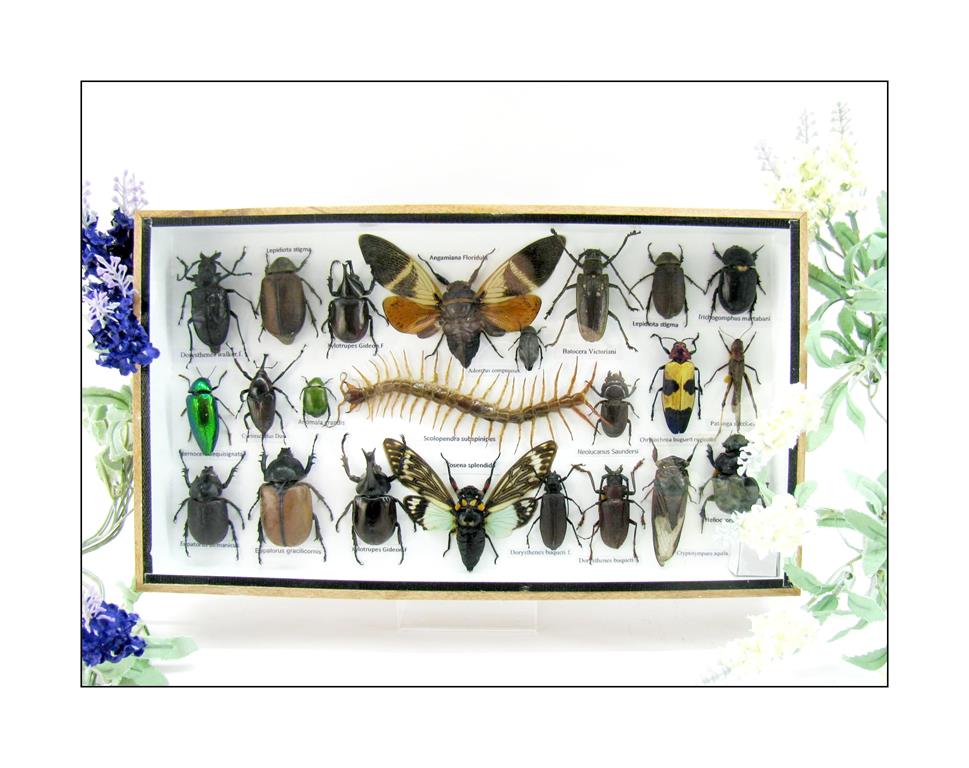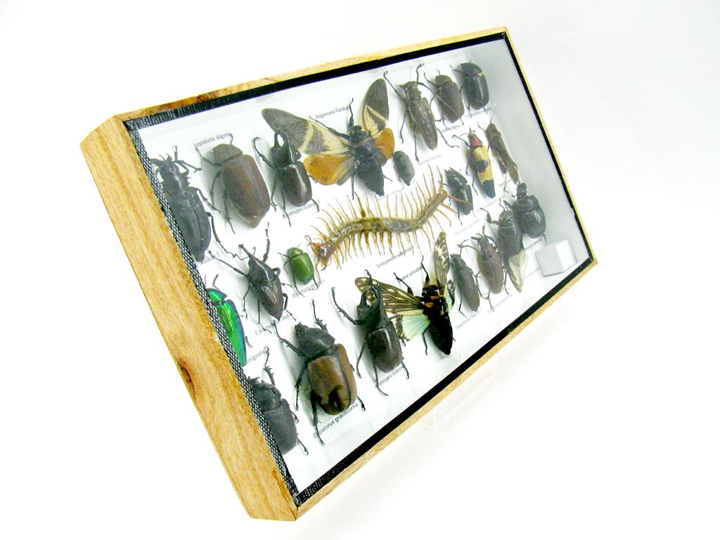 Echte exotische Insekten – einmalig – im XL Schaukasten aus Holz und Glas L16