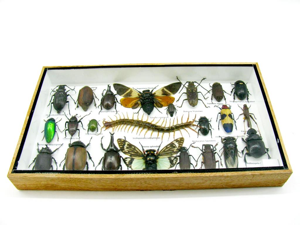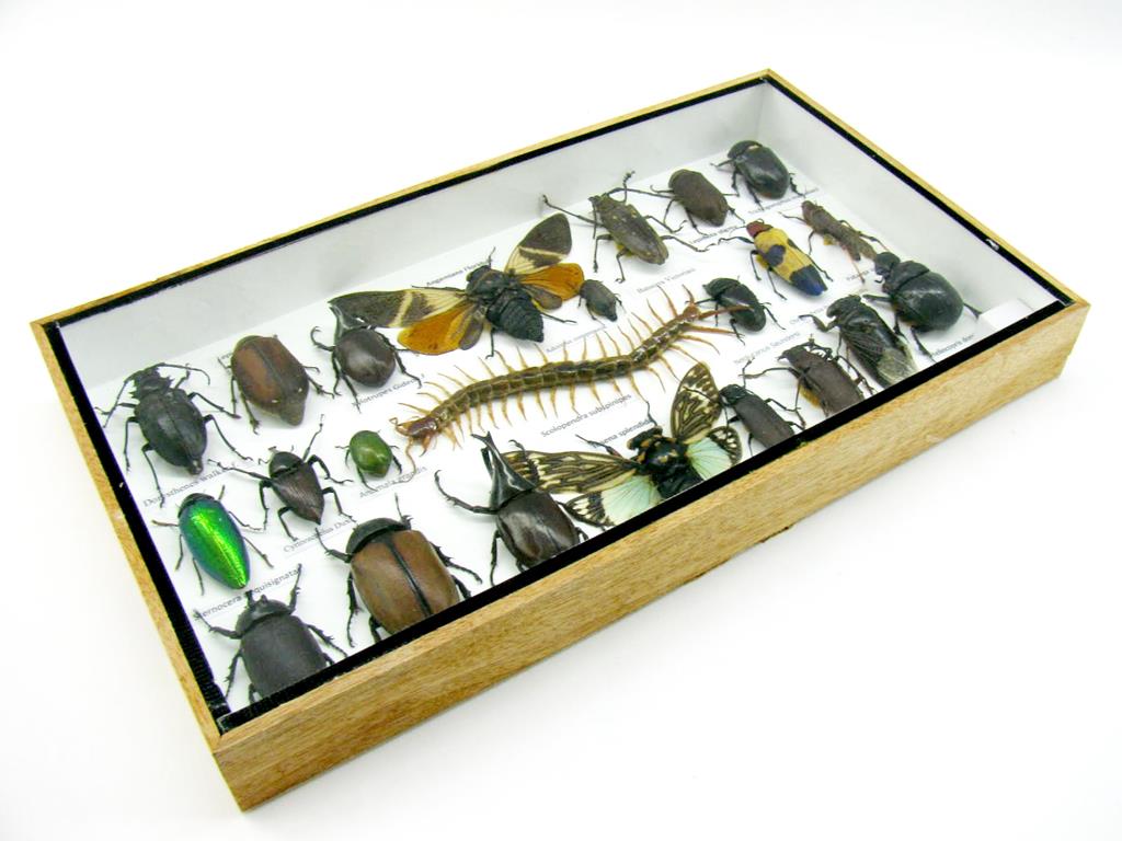 Echte exotische Insekten – einmalig – im XL Schaukasten aus Holz und Glas L23