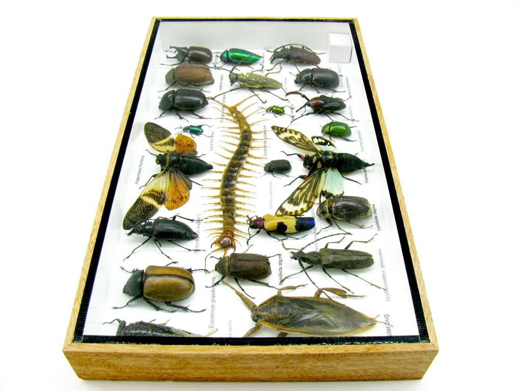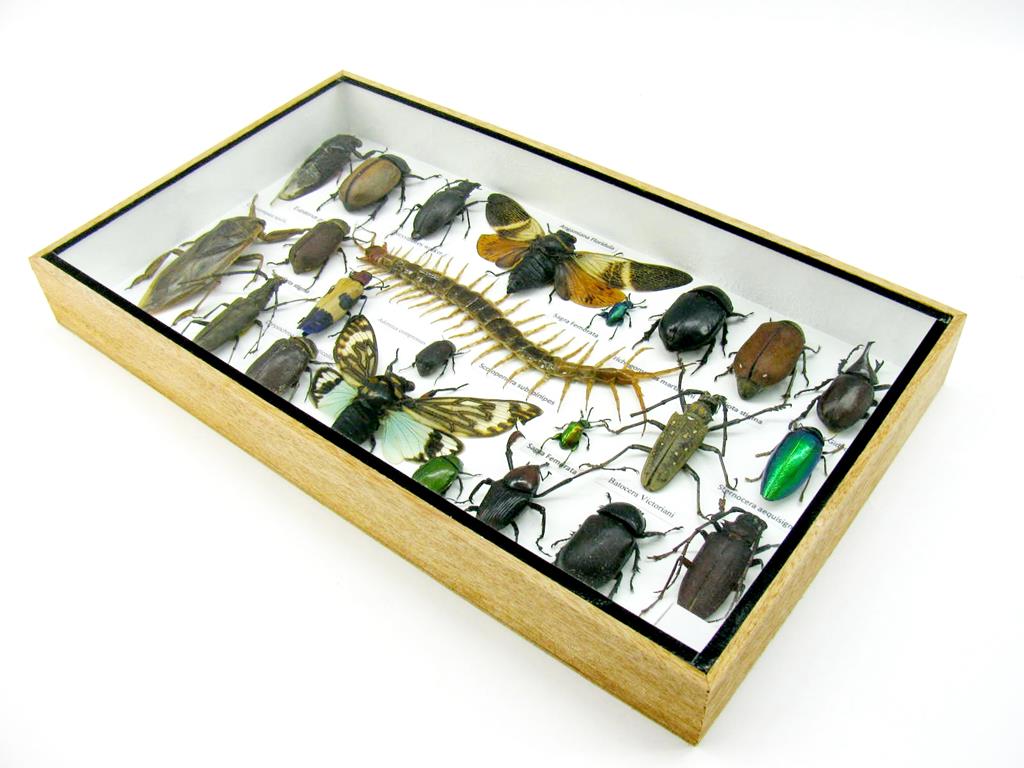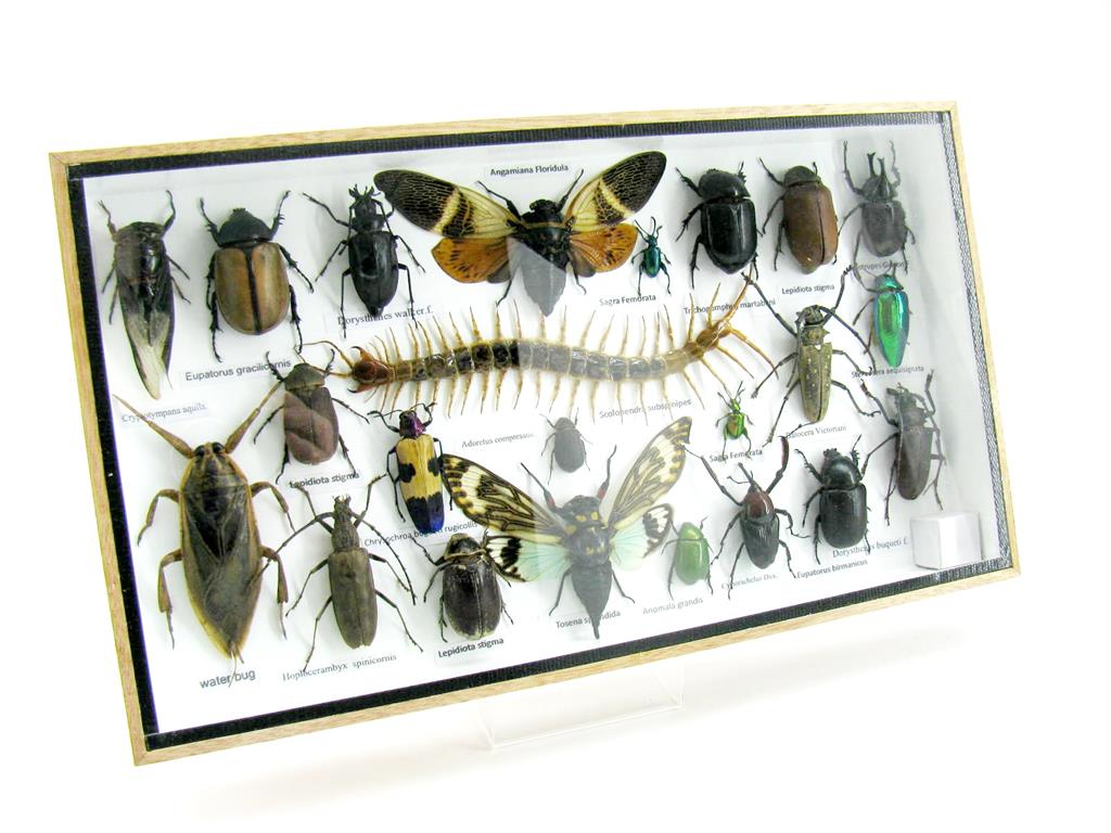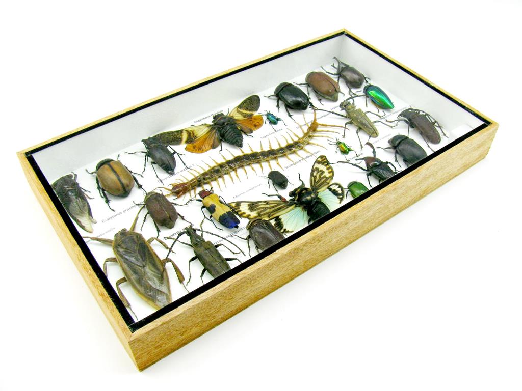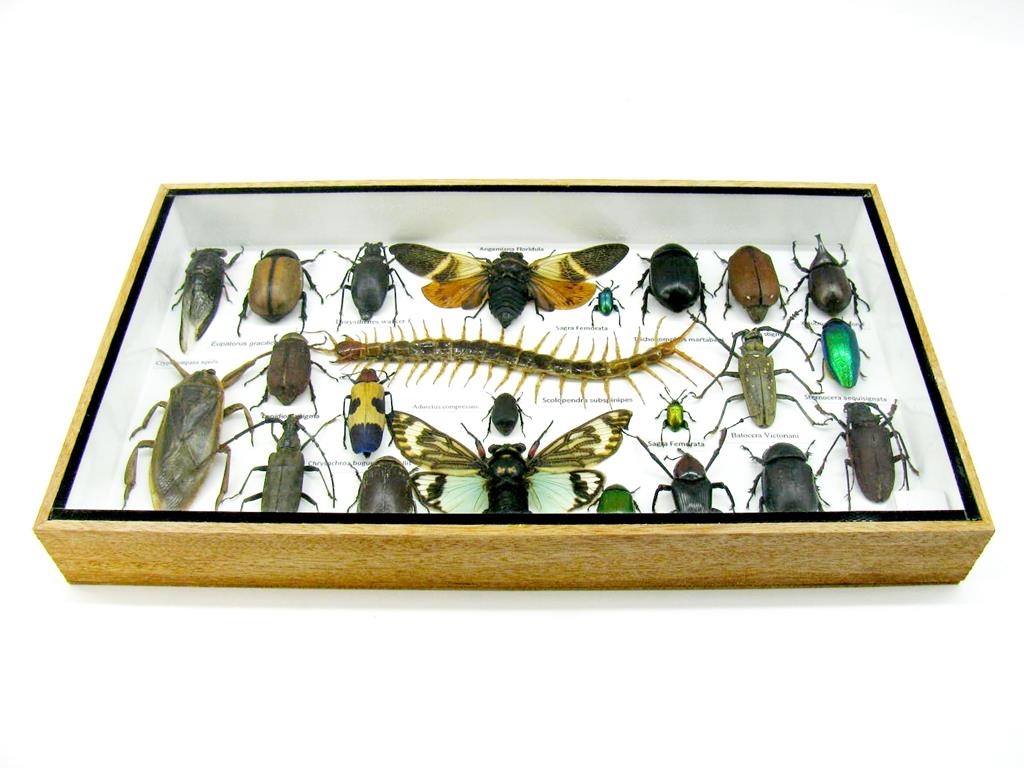 Echte exotische Insekten – einmalig – im XL Schaukasten aus Holz und Glas L22