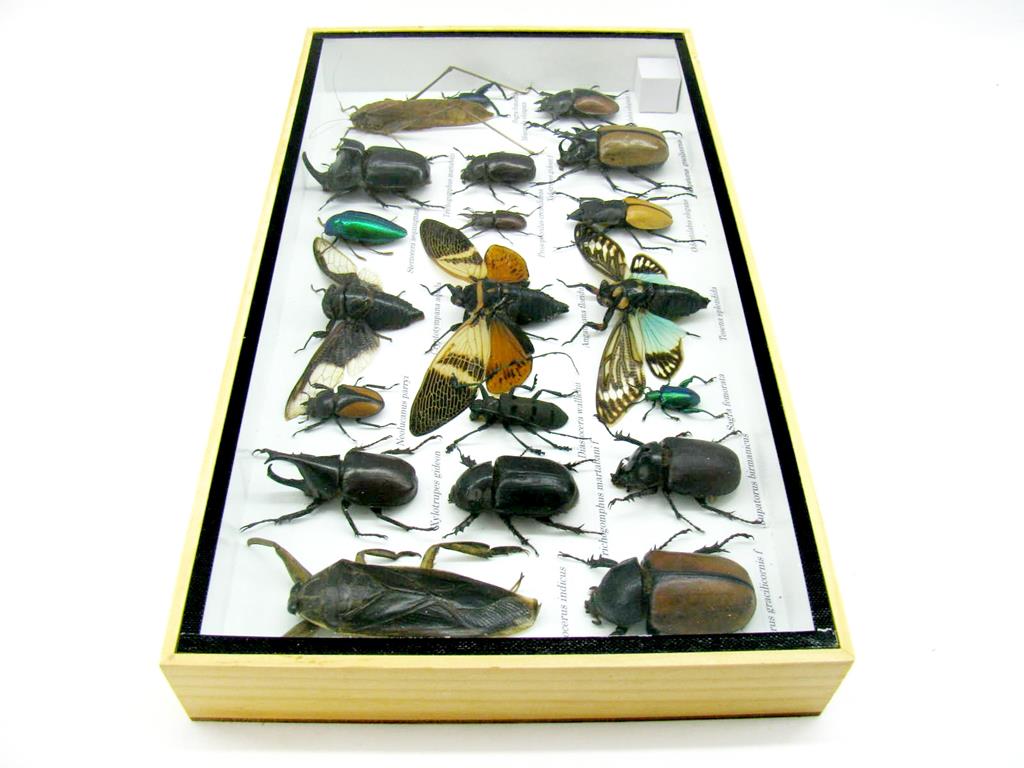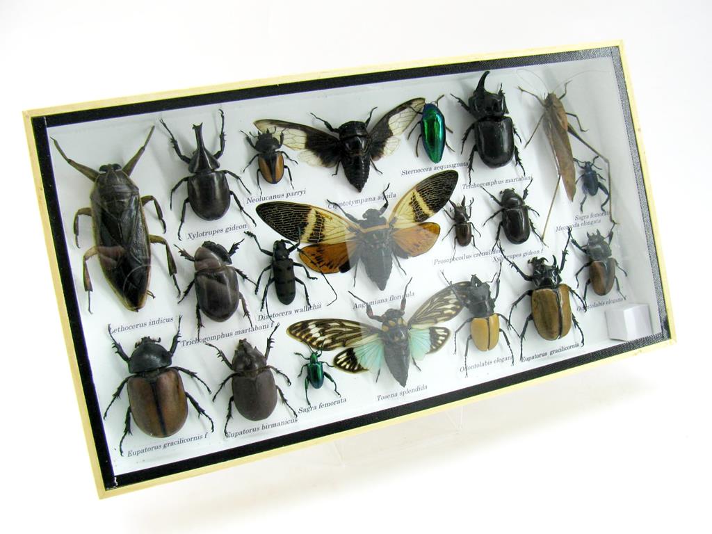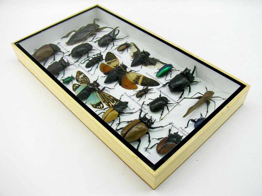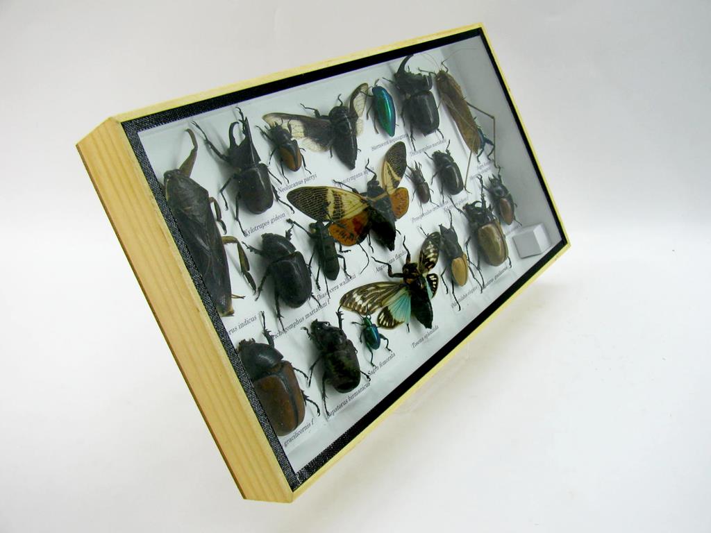 Echte exotische Insekten – einmalig – im XL Schaukasten aus Holz und Glas L28