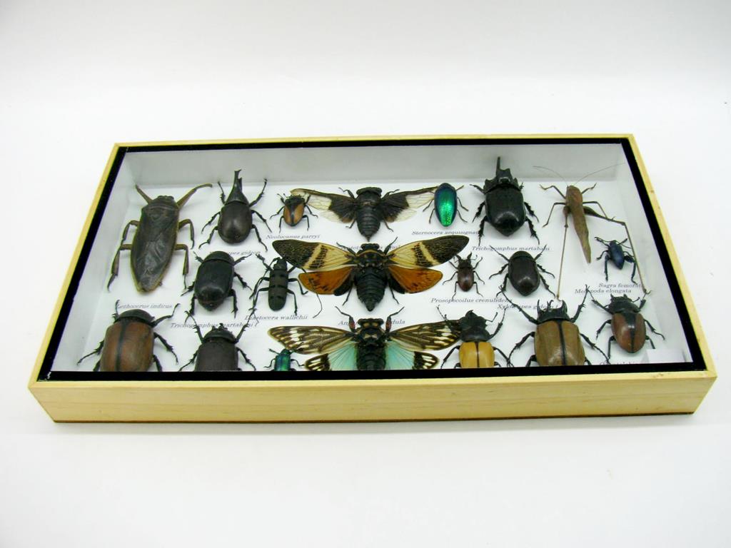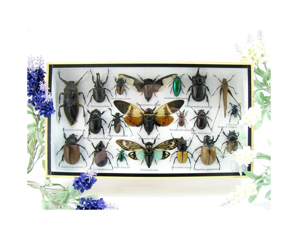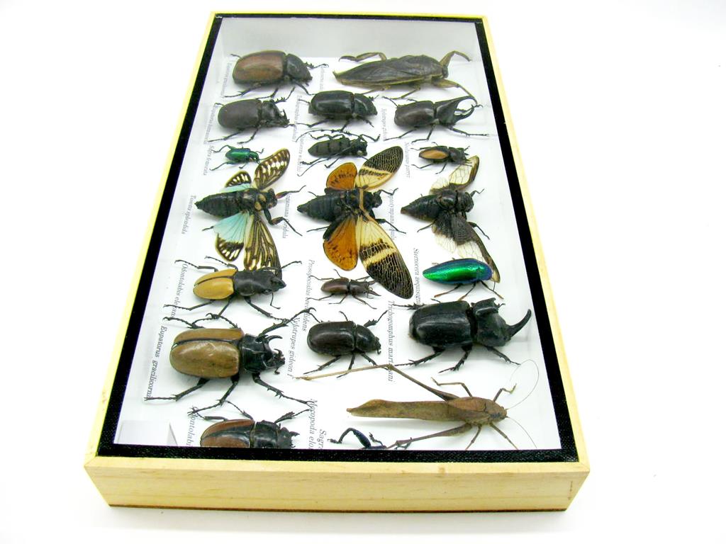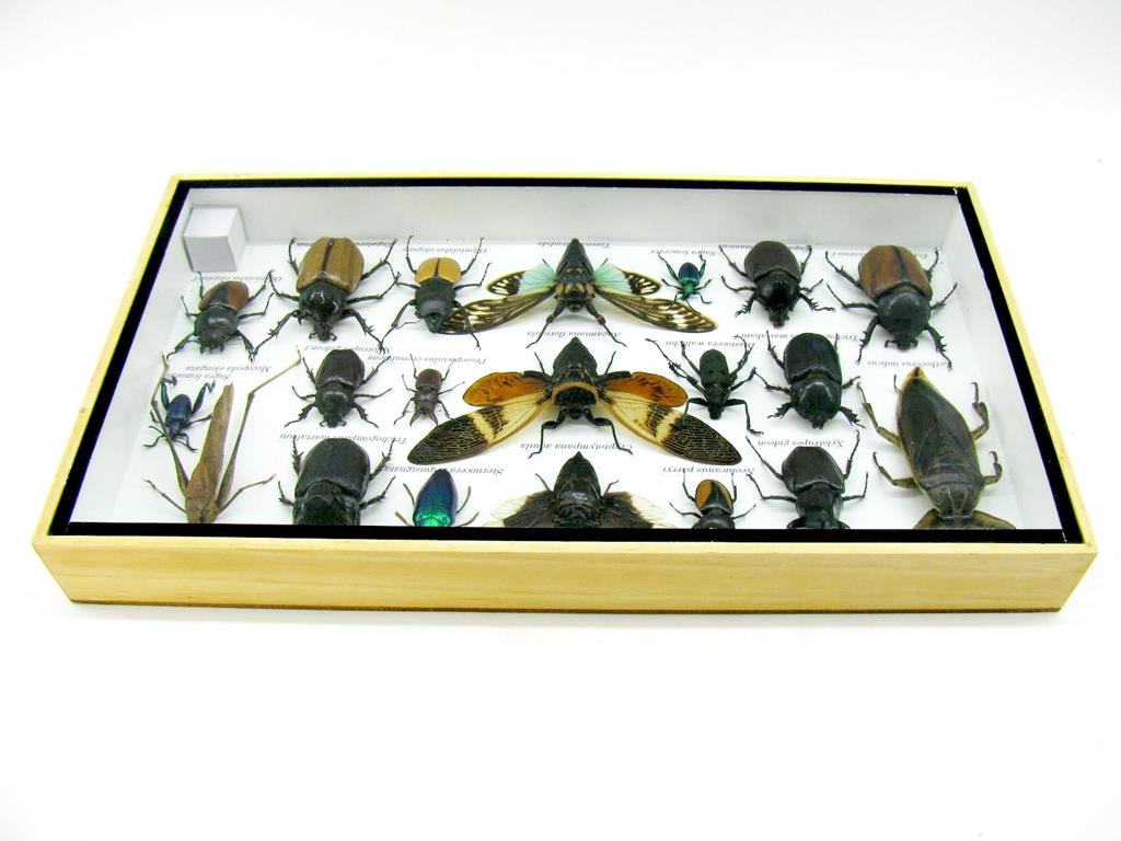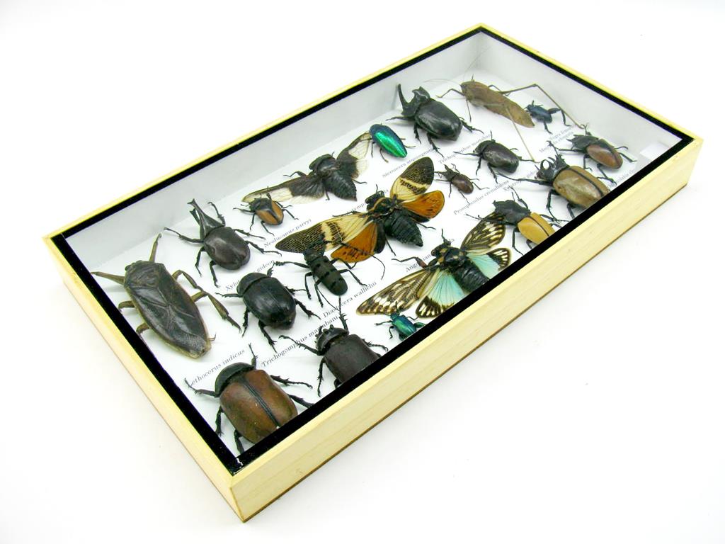Echte exotische Insekten – einmalig – im XL Schaukasten aus Holz und Glas L28