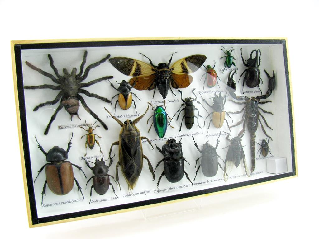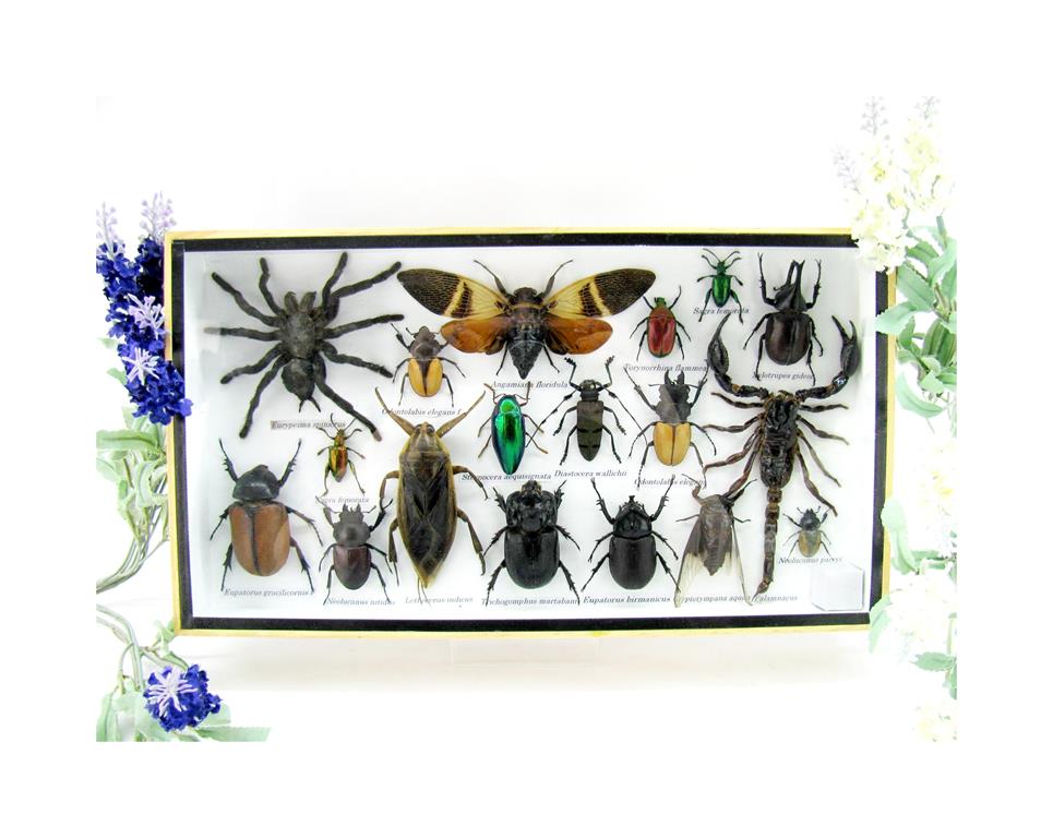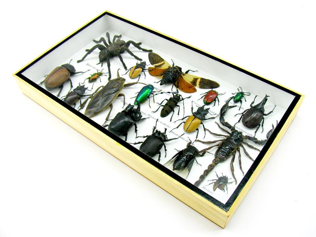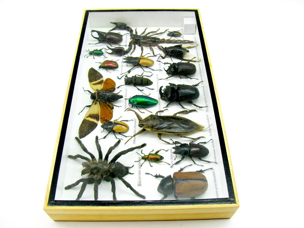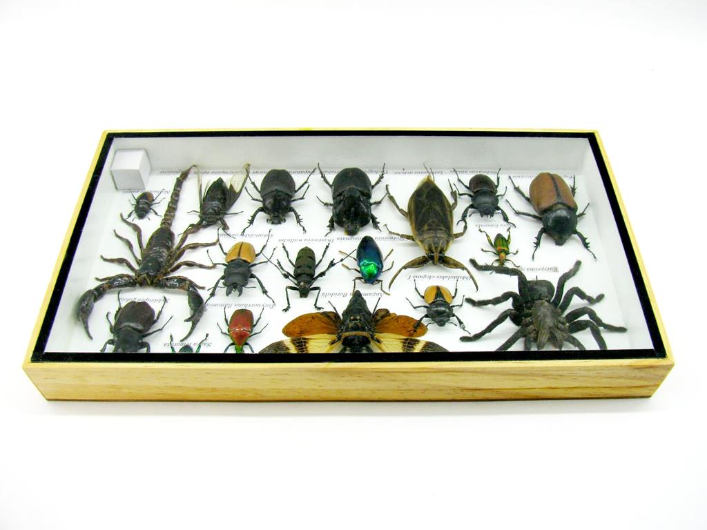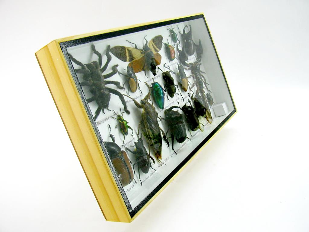 Echte exotische Insekten – einmalig – im XL Schaukasten aus Holz und Glas L20