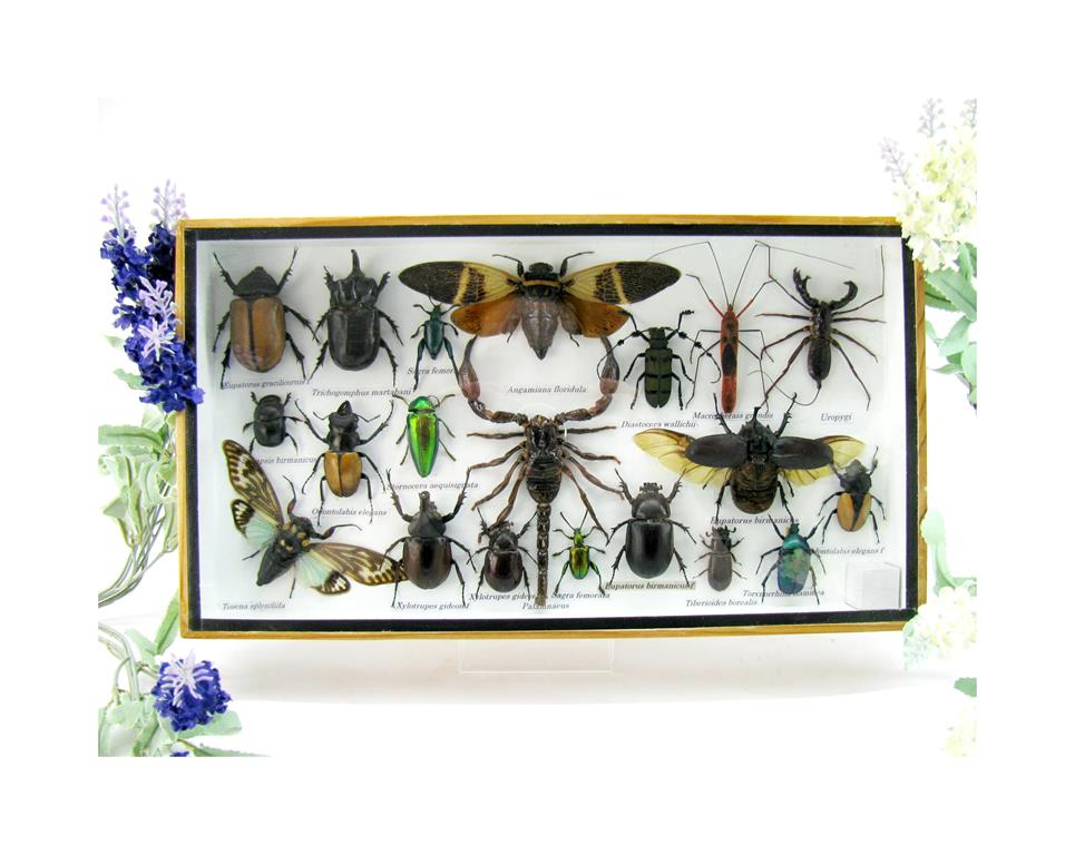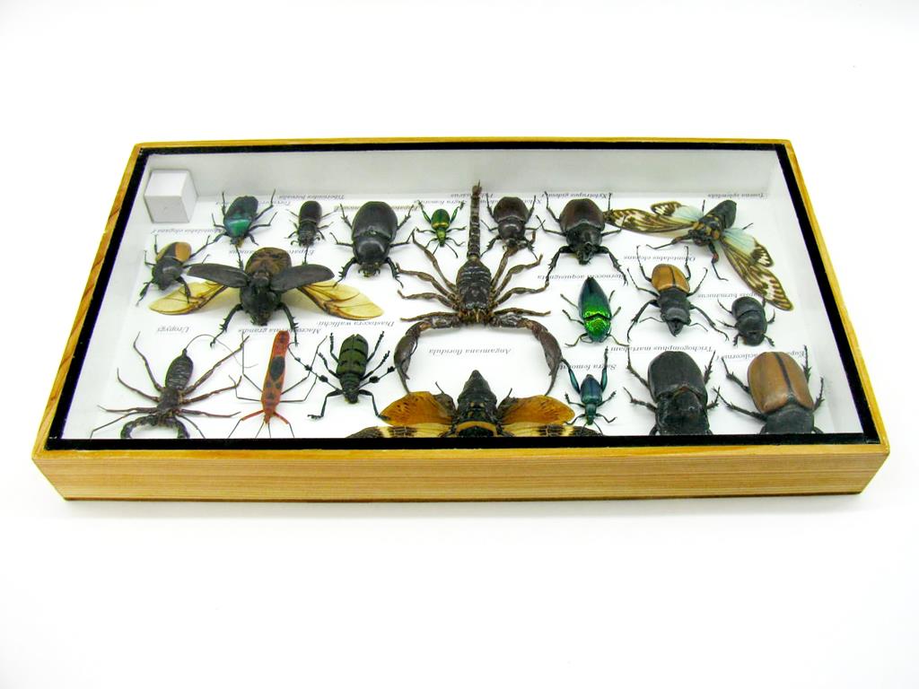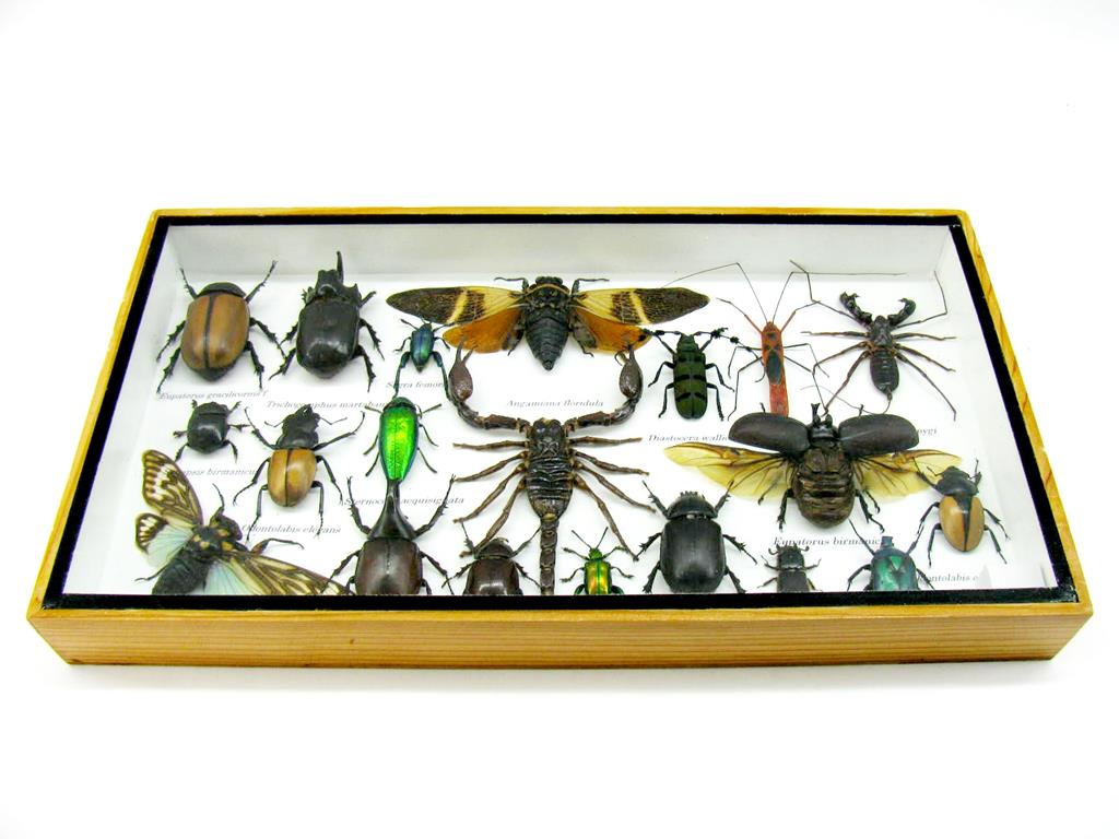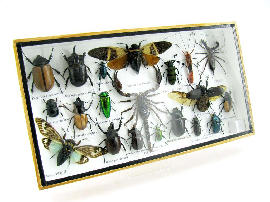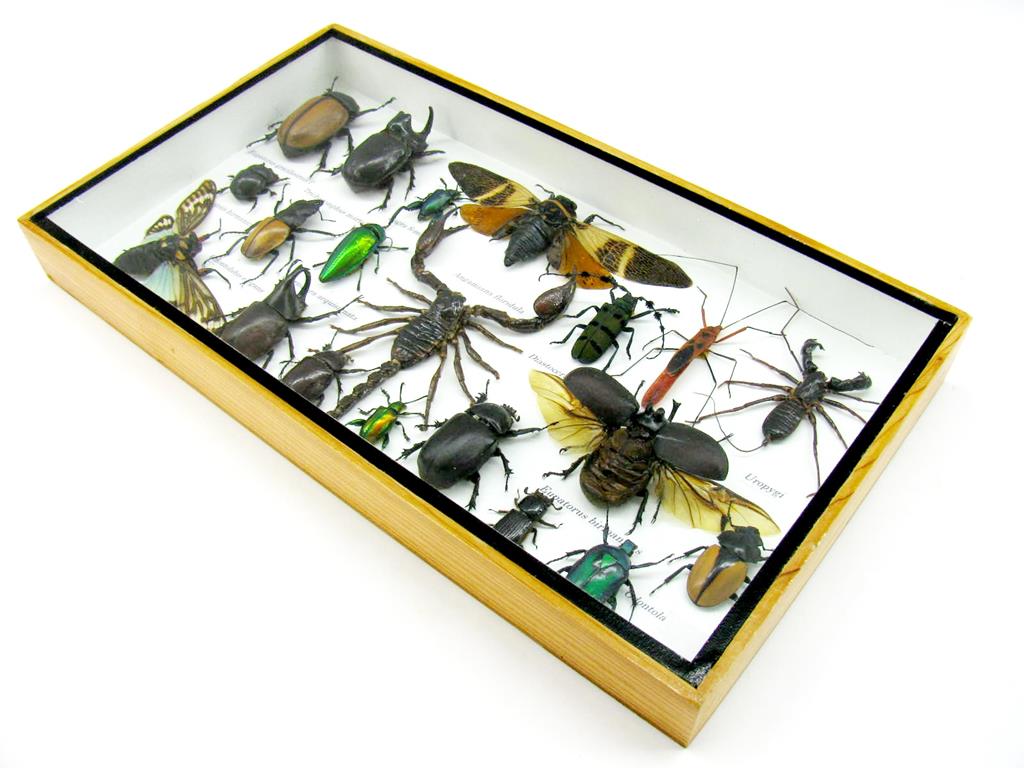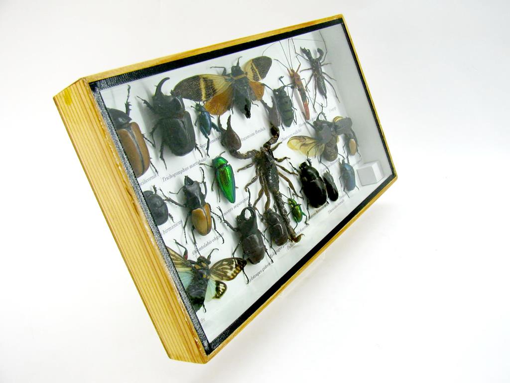 Echte exotische Insekten – einmalig – im XL Schaukasten aus Holz und Glas L19