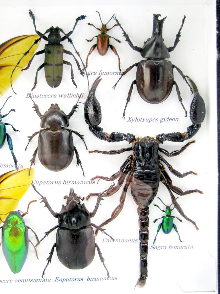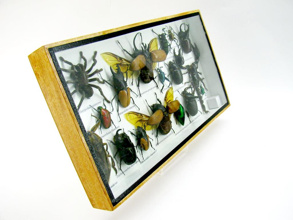 Echte exotische Insekten – einmalig – im XL Schaukasten aus Holz und Glas L18