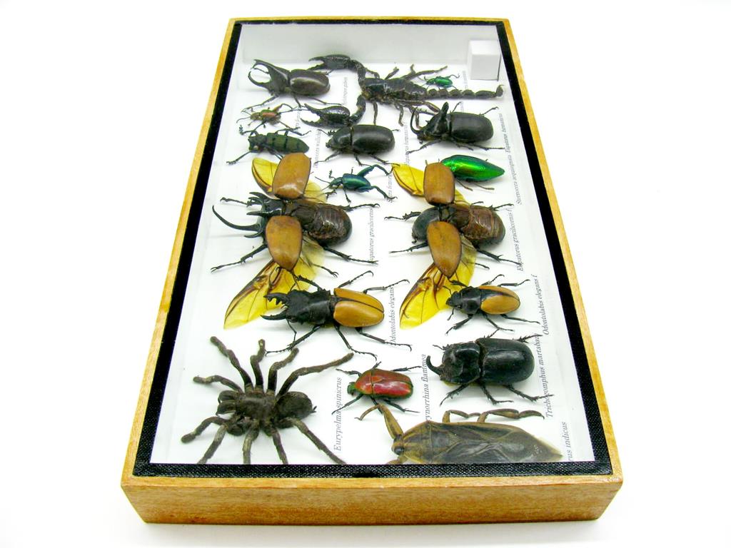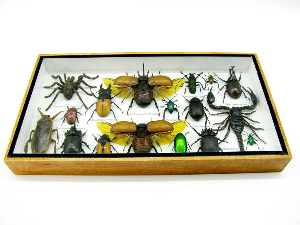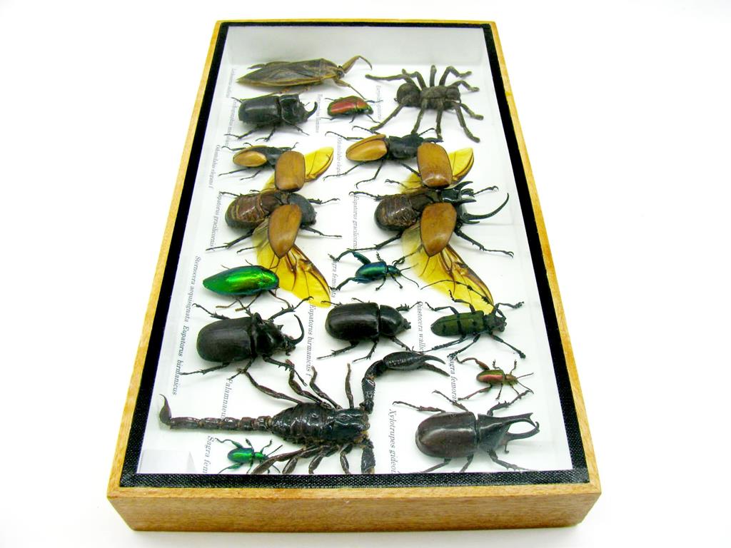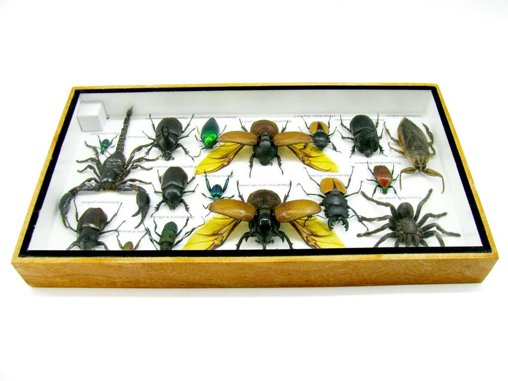 Echte exotische Insekten – einmalig – im XL Schaukasten aus Holz und Glas L20