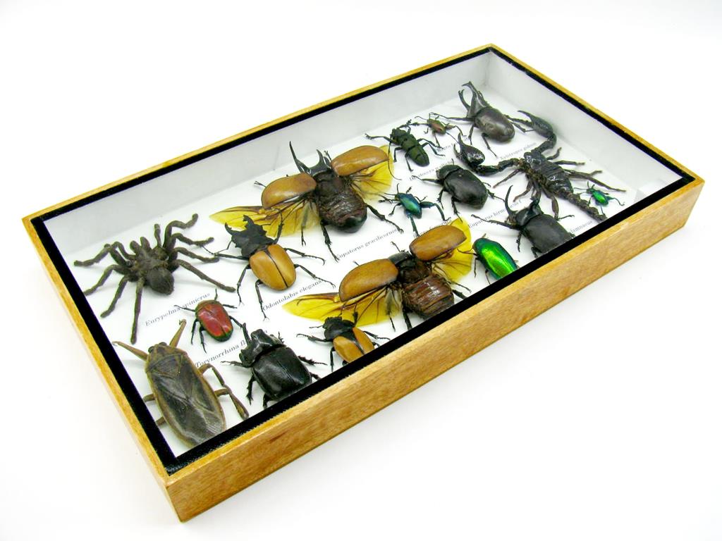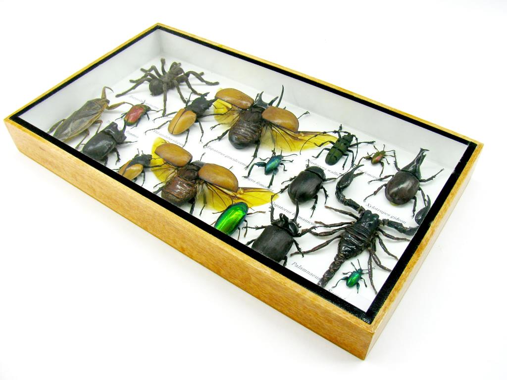 Echte exotische Insekten – einmalig – im XL Schaukasten aus Holz und Glas L28