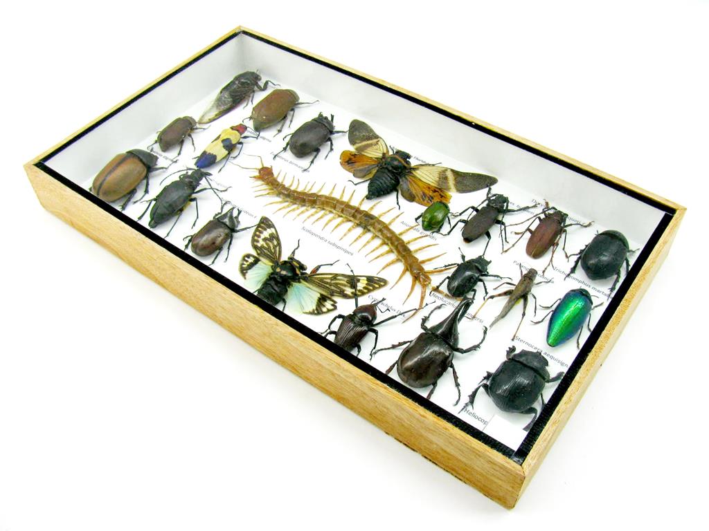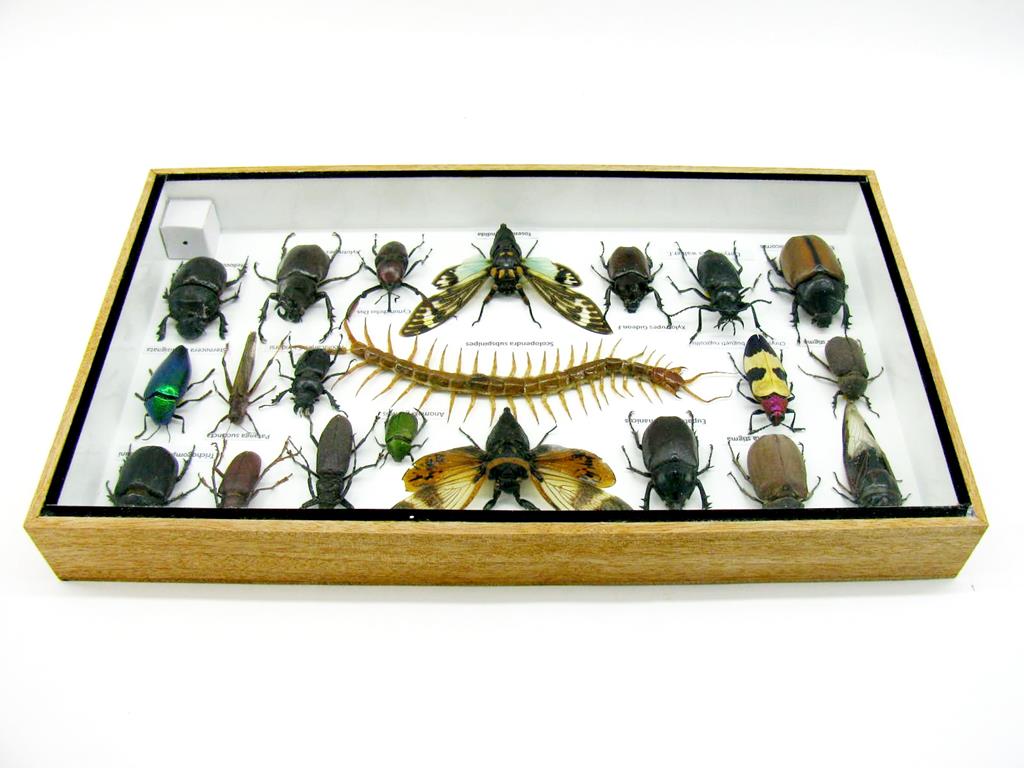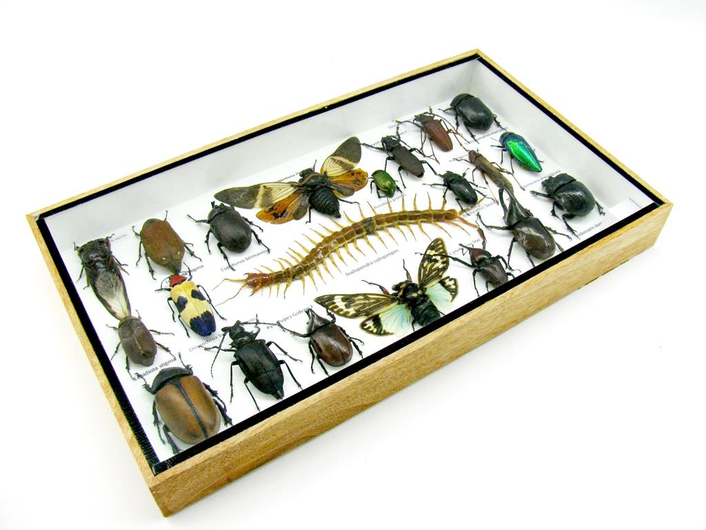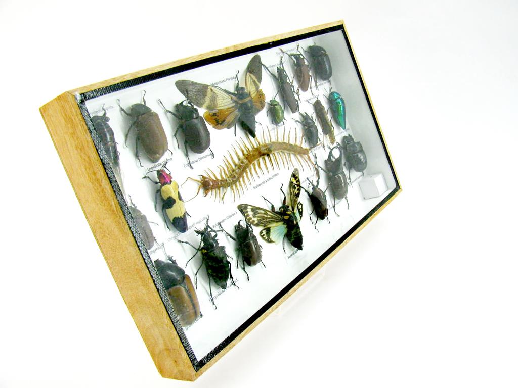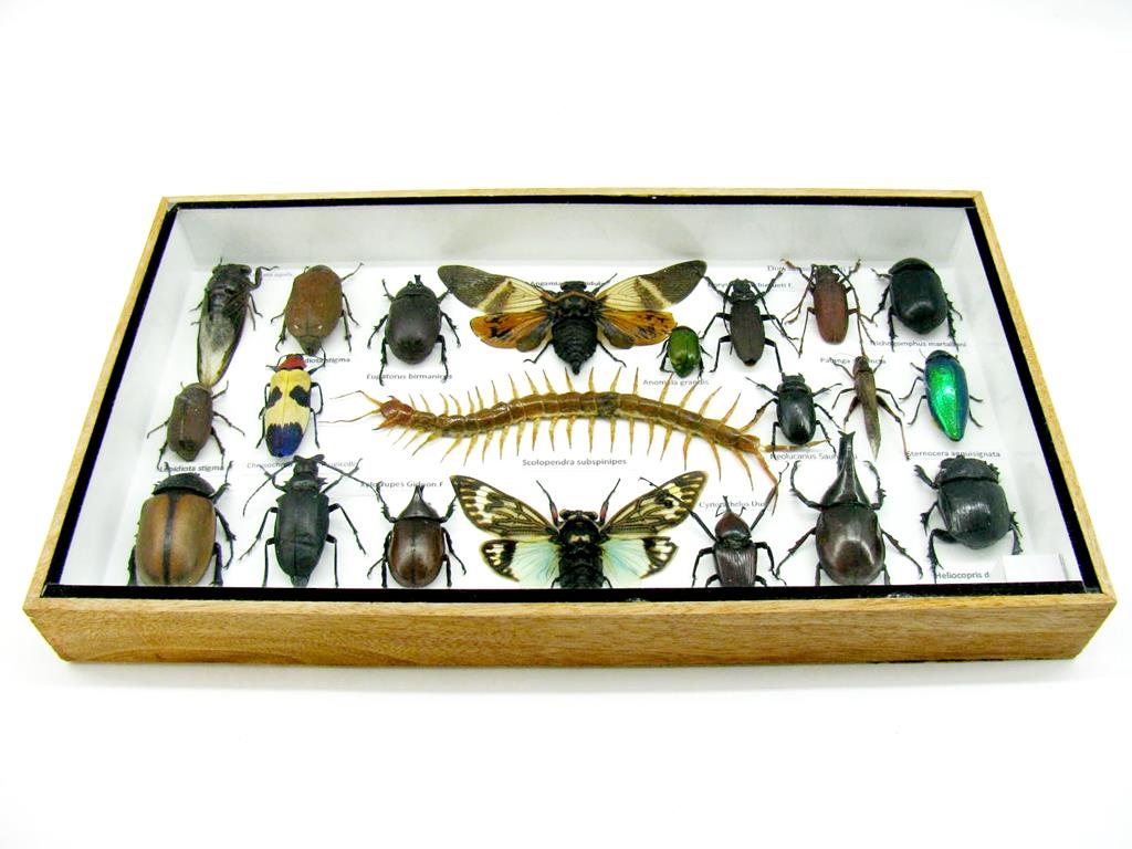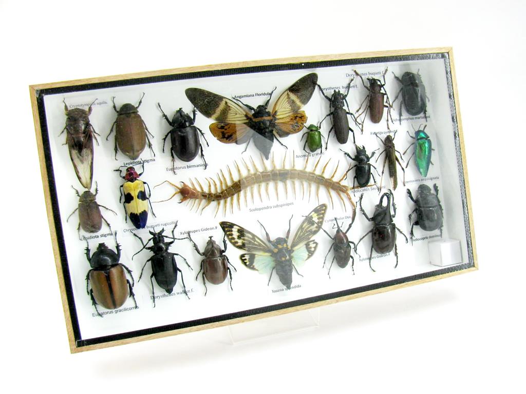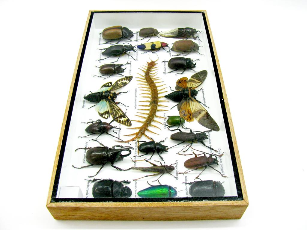 Echte exotische Insekten – einmalig – im XL Schaukasten aus Holz und Glas L22
