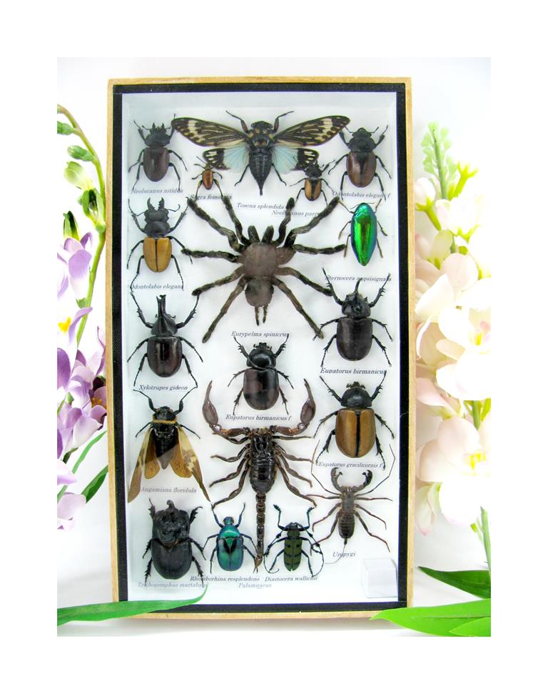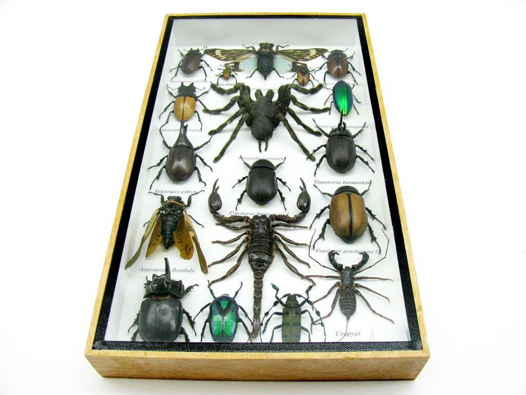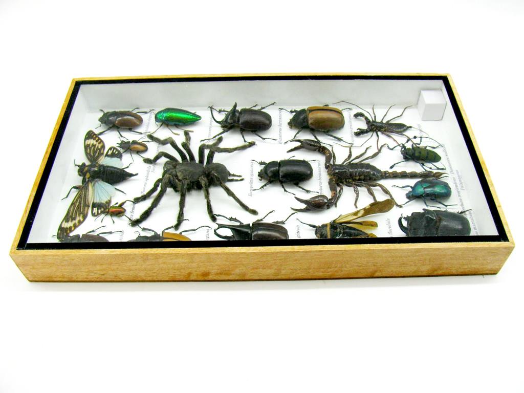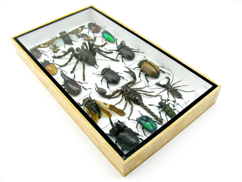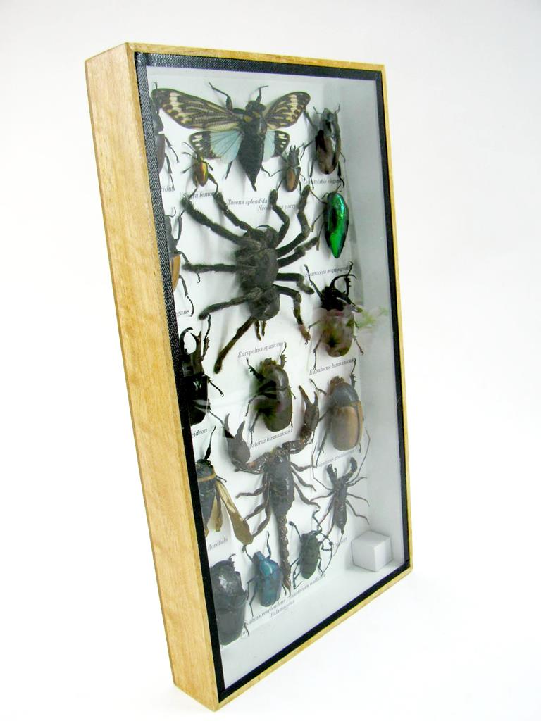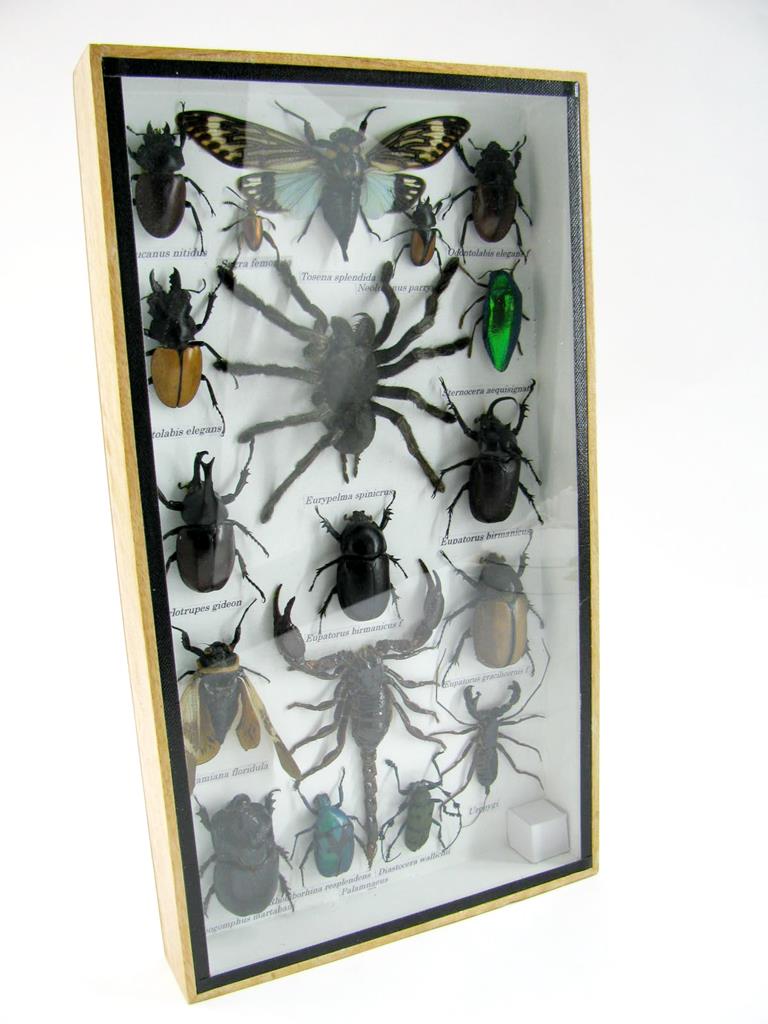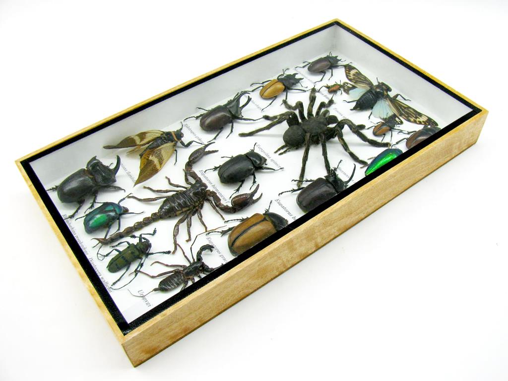 Echte exotische Insekten – einmalig – im XL Schaukasten aus Holz und Glas L19
