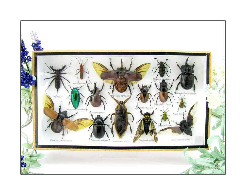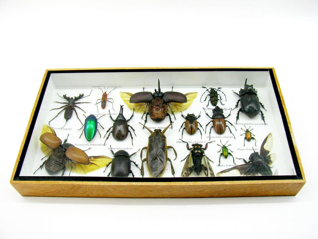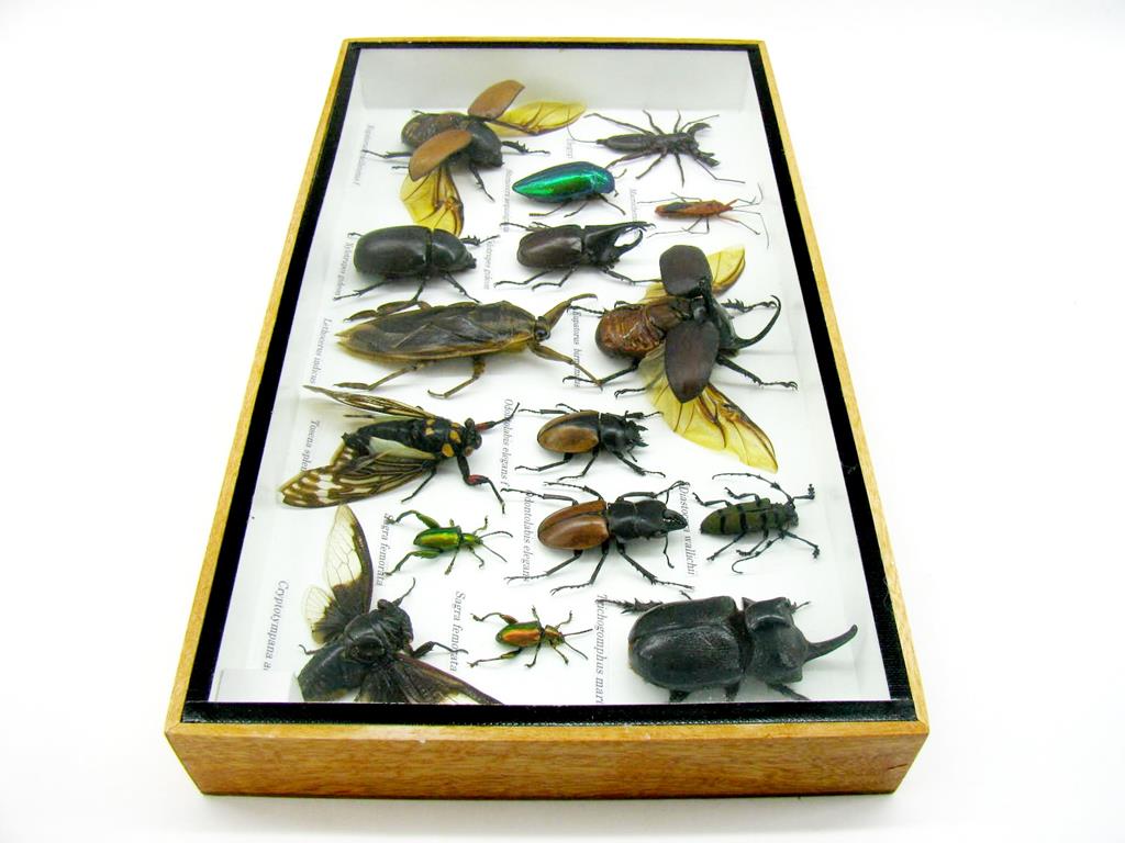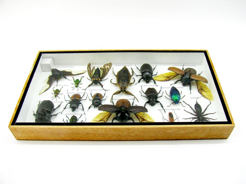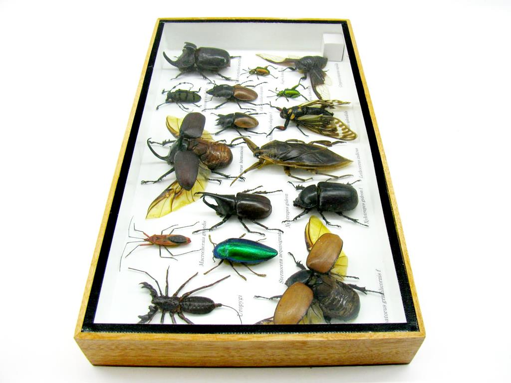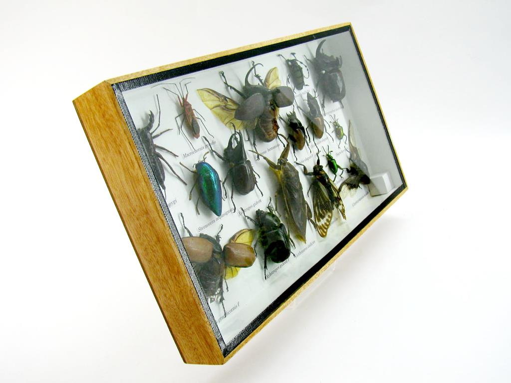 Echte exotische Insekten – einmalig – im XL Schaukasten aus Holz und Glas L22
