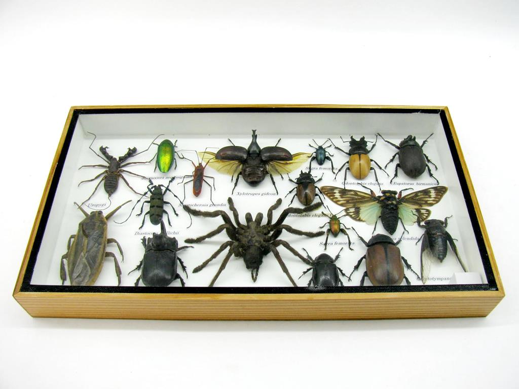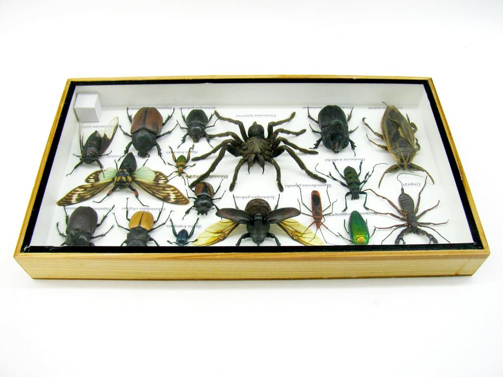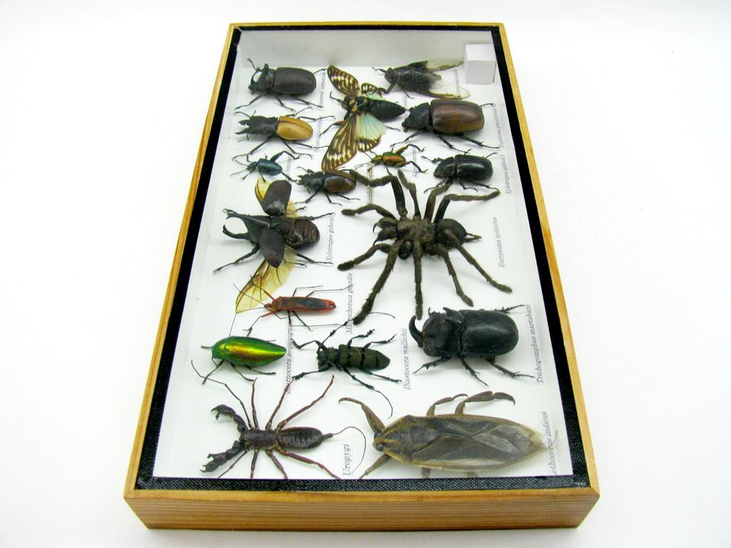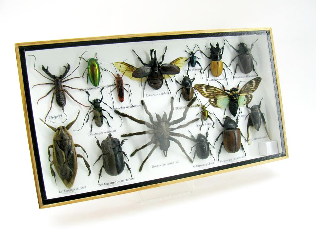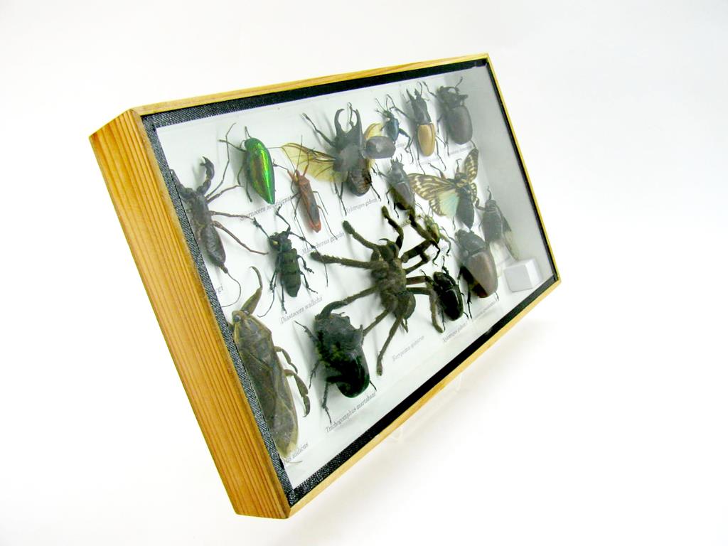 Echte exotische Insekten – einmalig – im XL Schaukasten aus Holz und Glas L18