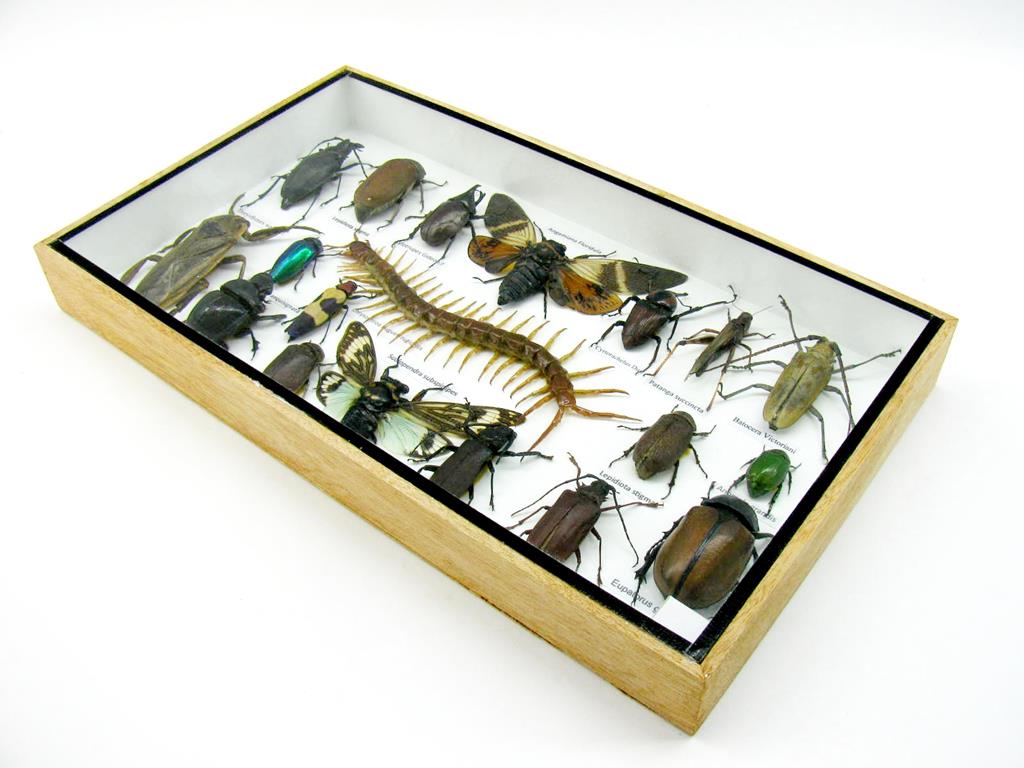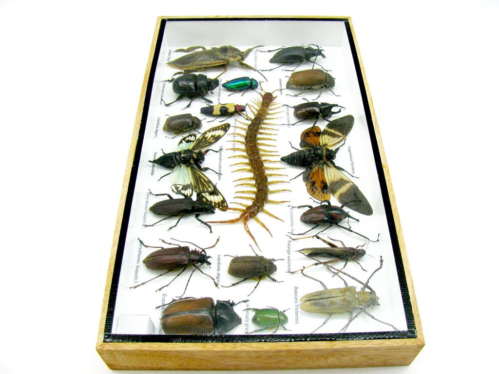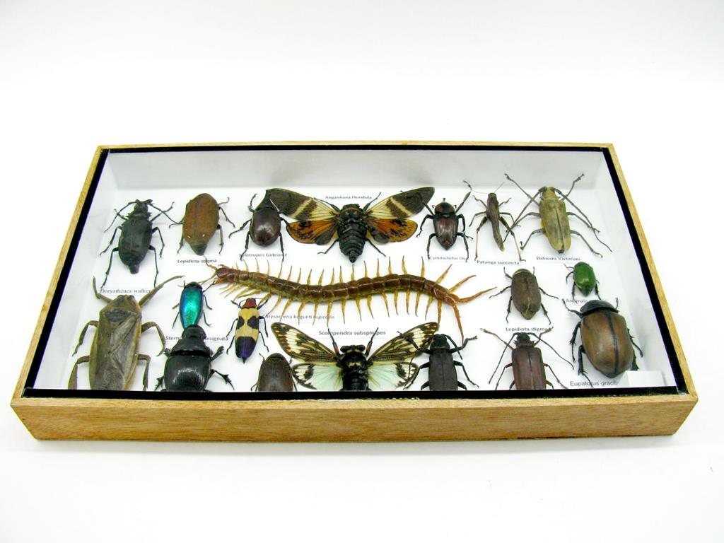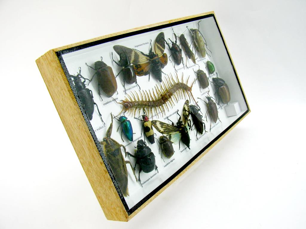 Echte exotische Insekten – einmalig – im XL Schaukasten aus Holz und Glas L28