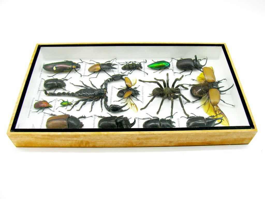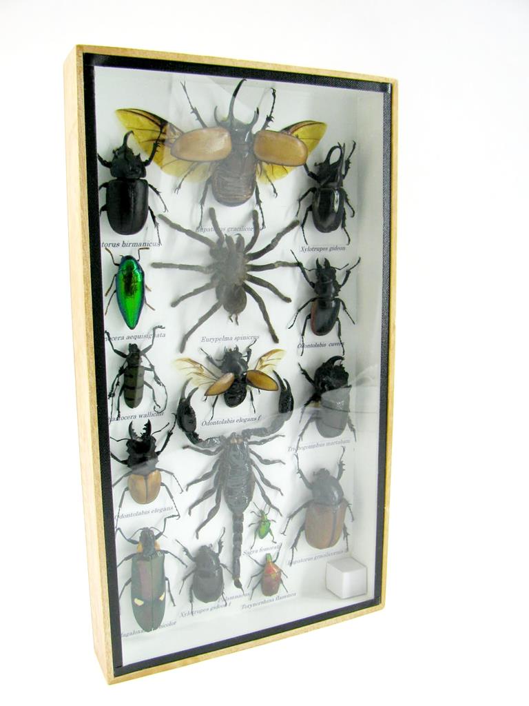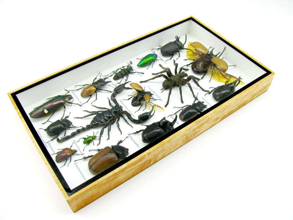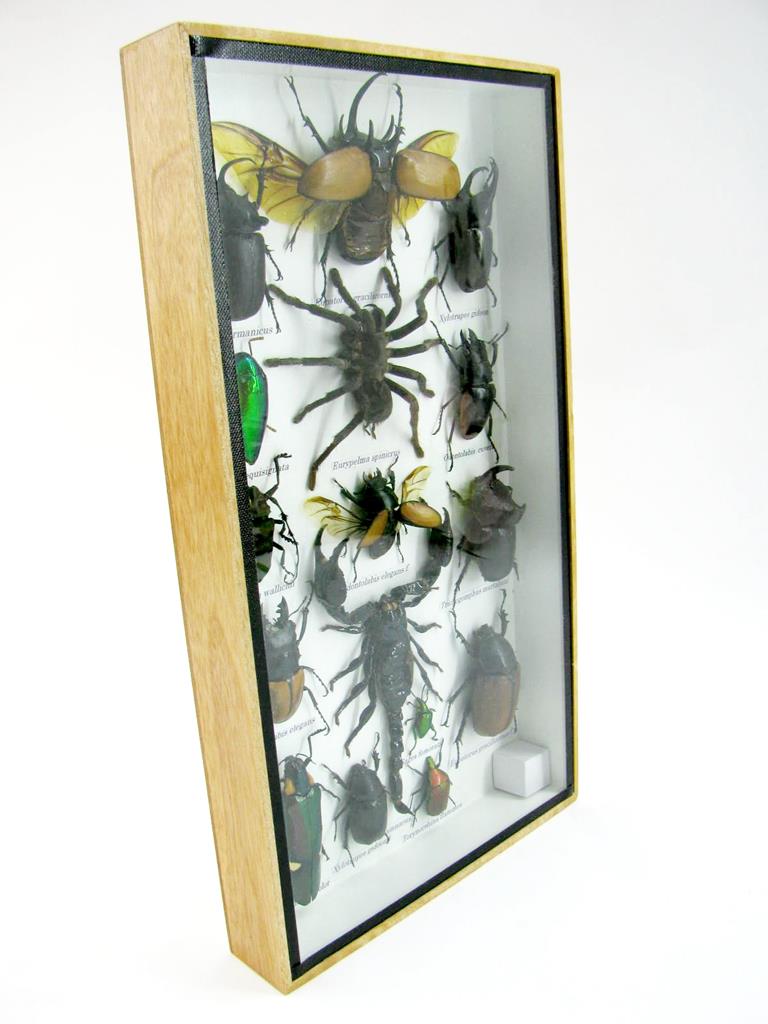 Echte exotische Insekten – einmalig – im XL Schaukasten aus Holz und Glas L18