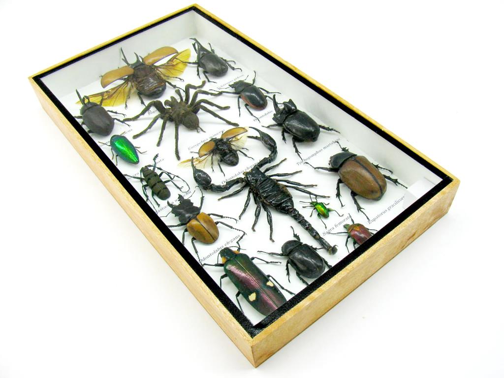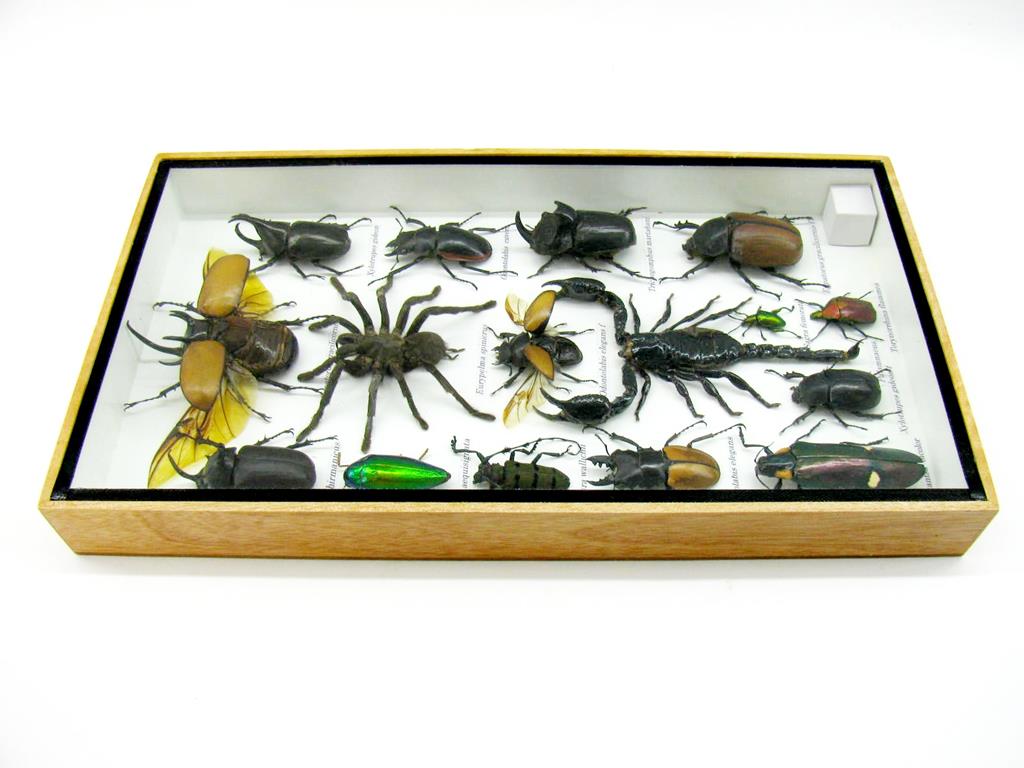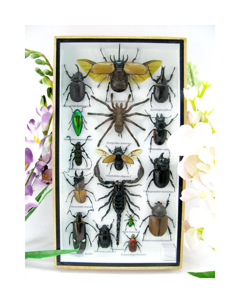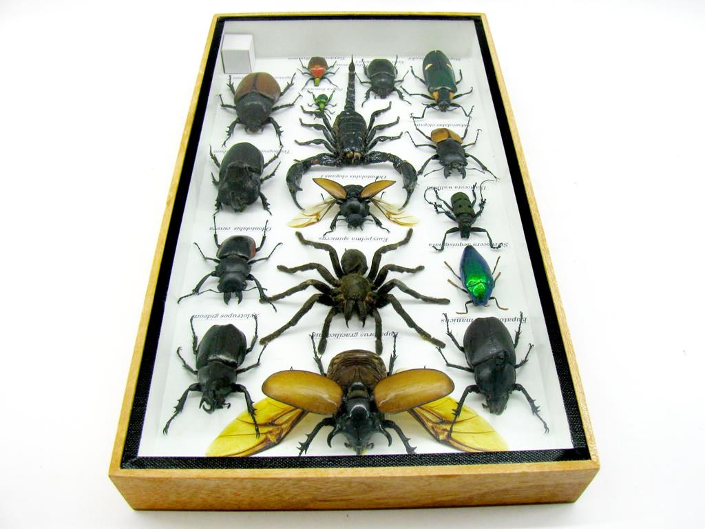 Echte exotische Insekten – einmalig – im XL Schaukasten aus Holz und Glas L18