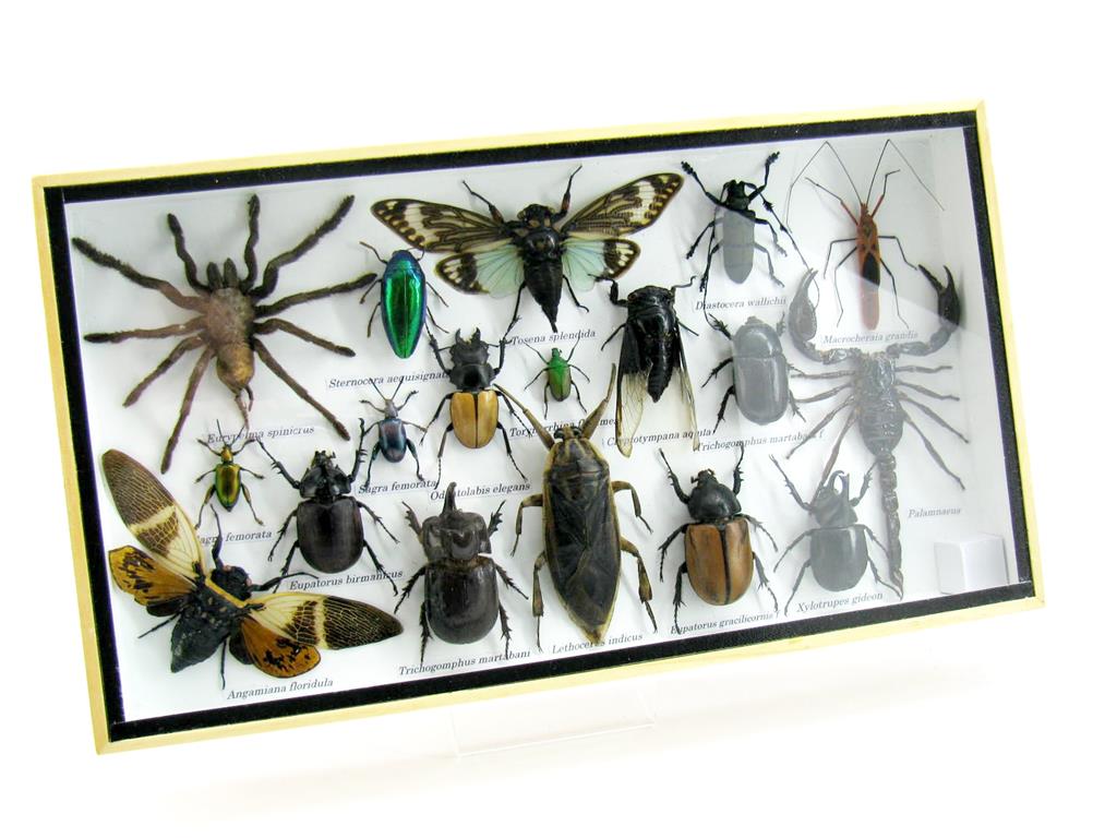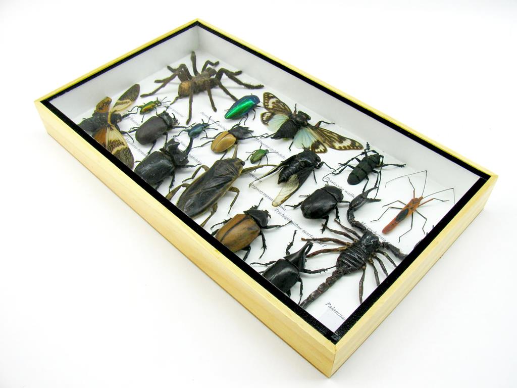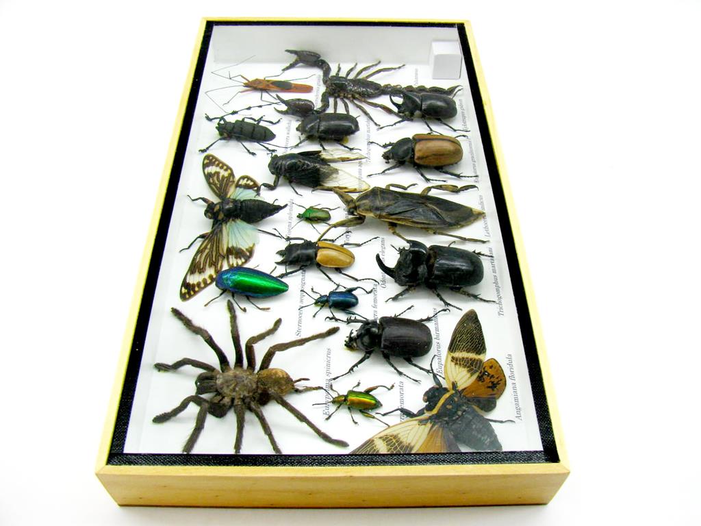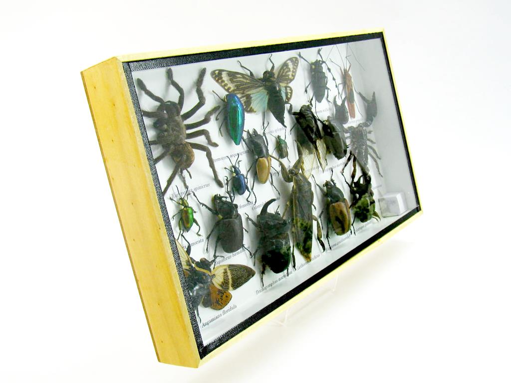 Echte exotische Insekten – einmalig – im XL Schaukasten aus Holz und Glas L16