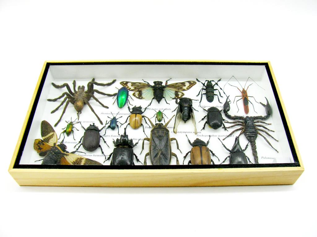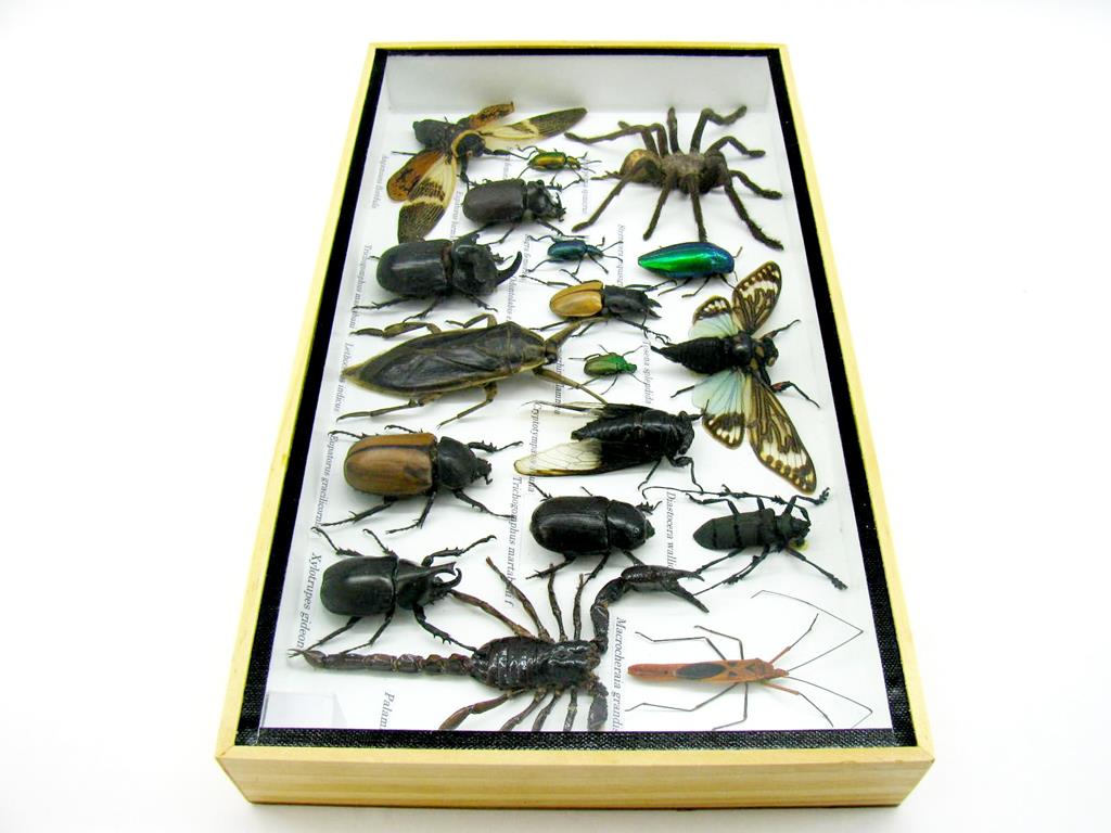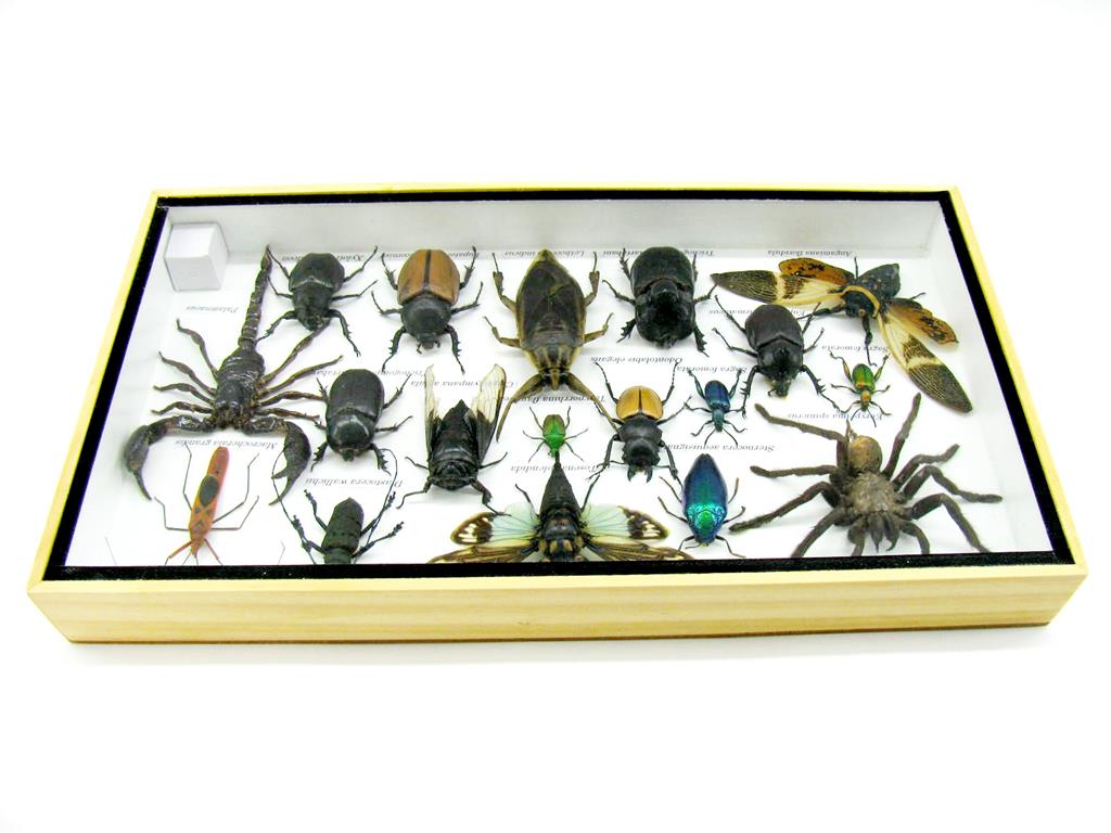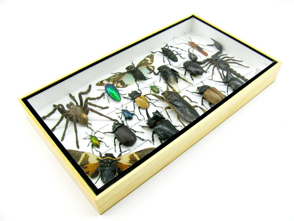 Echte exotische Insekten – einmalig – im XL Schaukasten aus Holz und Glas L16