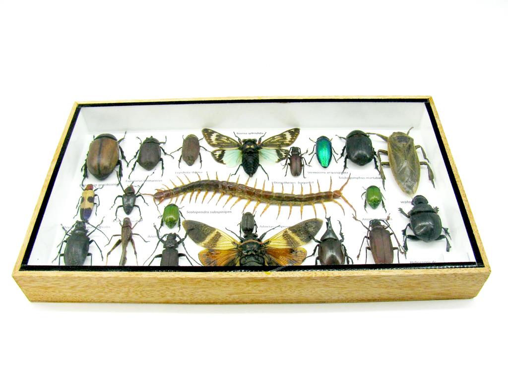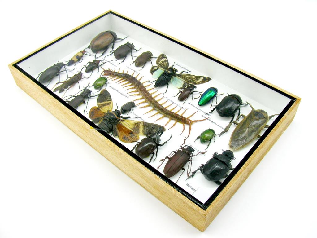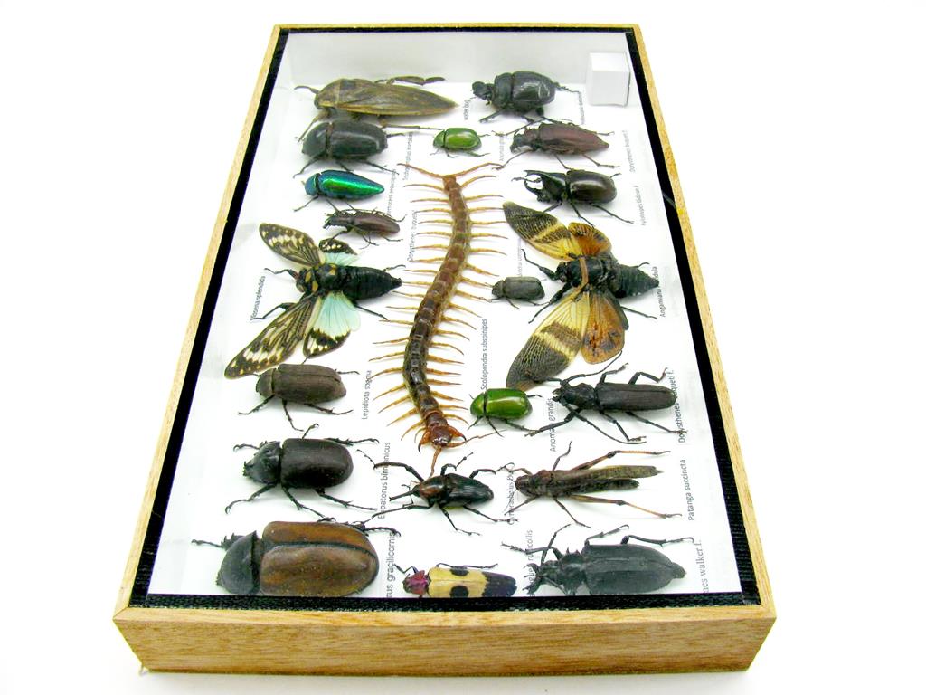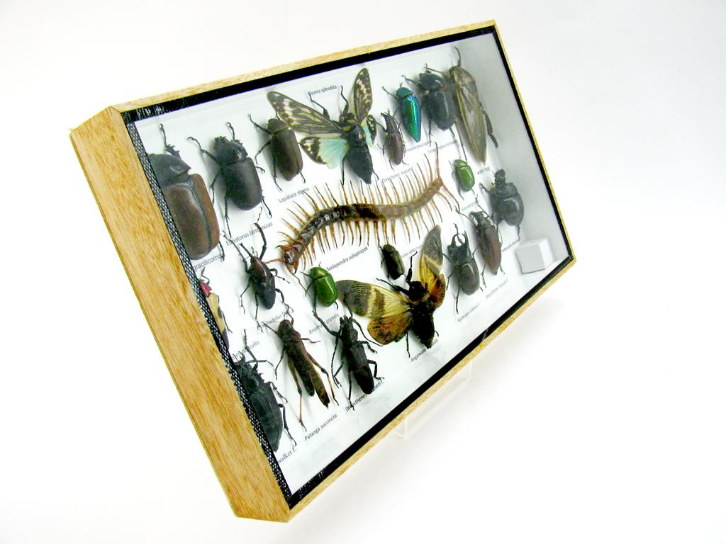 Echte exotische Insekten – einmalig – im XL Schaukasten aus Holz und Glas L23