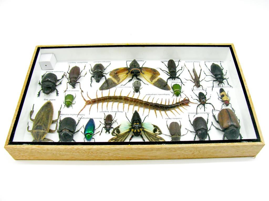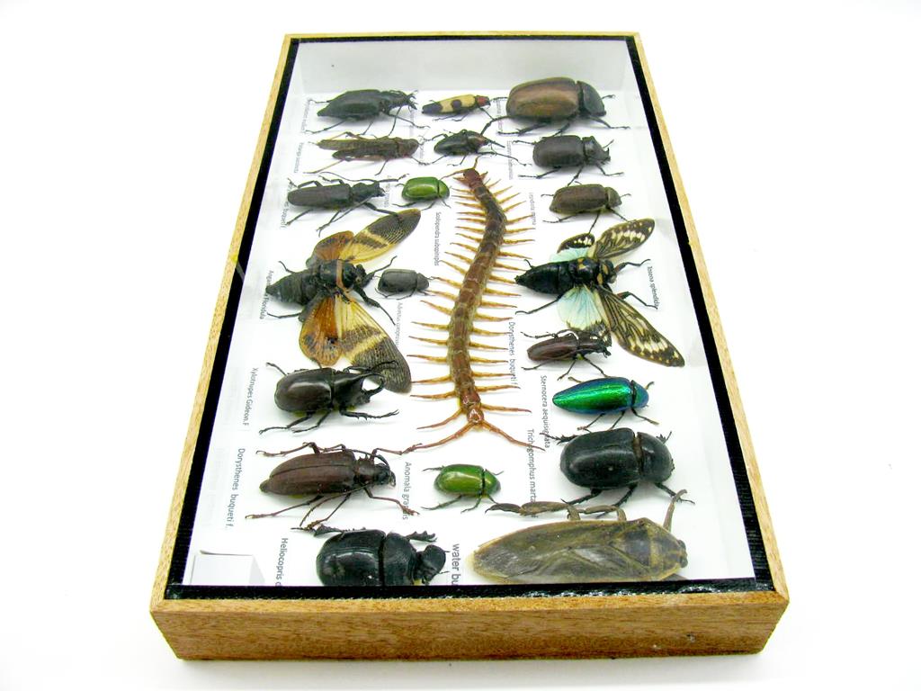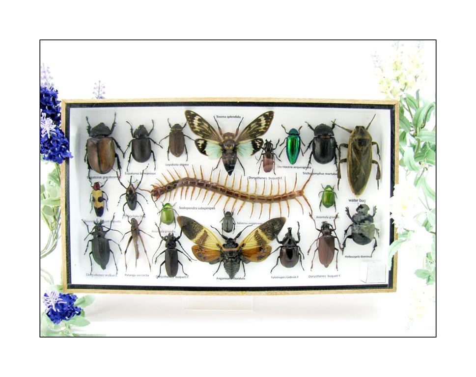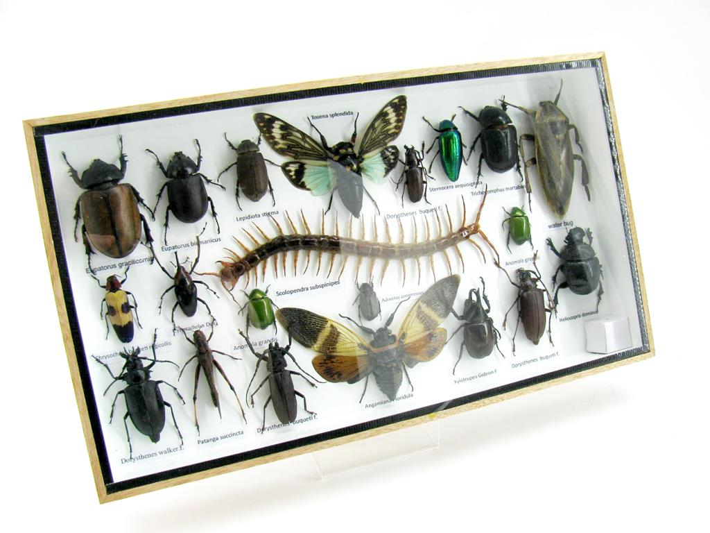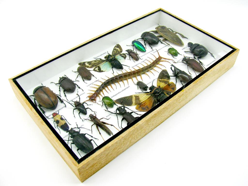 Echte exotische Insekten – einmalig – im XL Schaukasten aus Holz und Glas L23