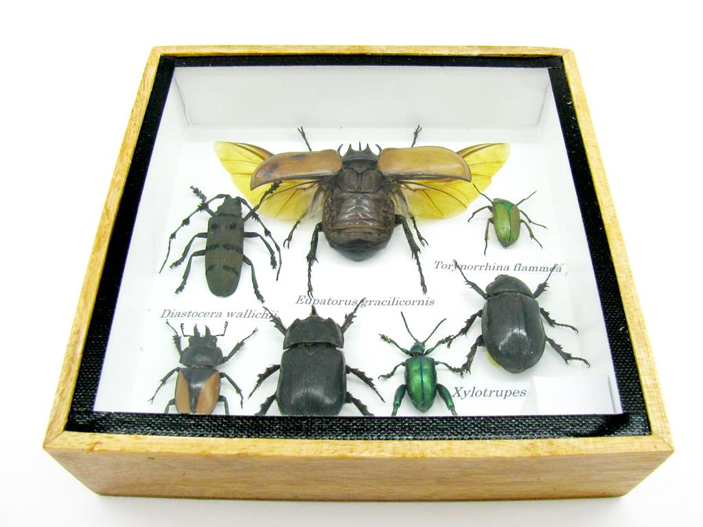 Echte exotische Insekten – einmalig – im Schaukasten aus Holz und Glas s07