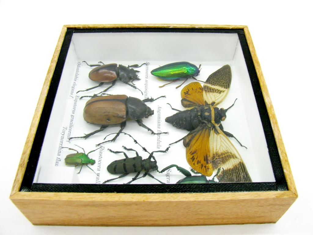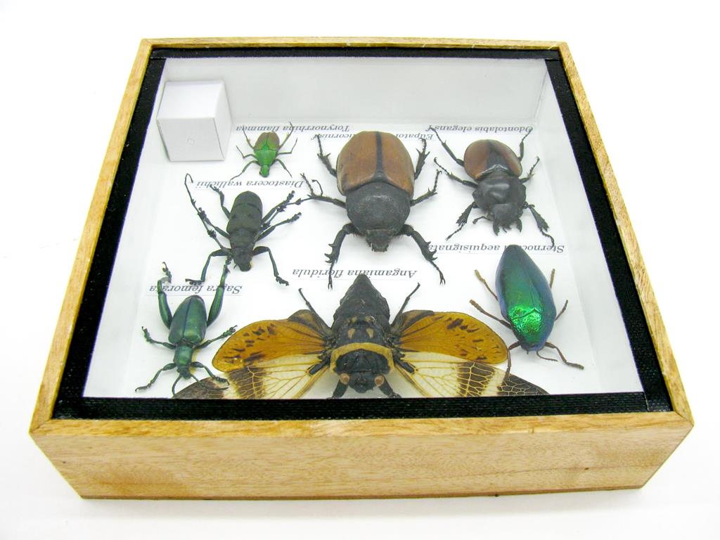Echte exotische Insekten – einmalig – im Schaukasten aus Holz und Glas s07
