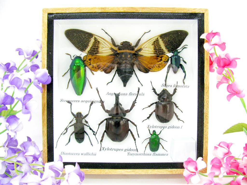 Echte exotische Insekten – einmalig – im Schaukasten aus Holz und Glas s23