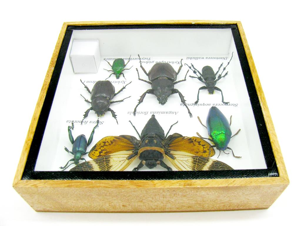 Echte exotische Insekten – einmalig – im Schaukasten aus Holz und Glas s13