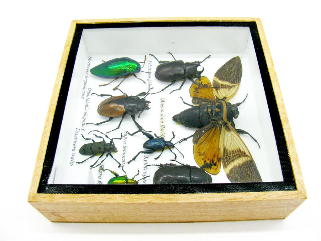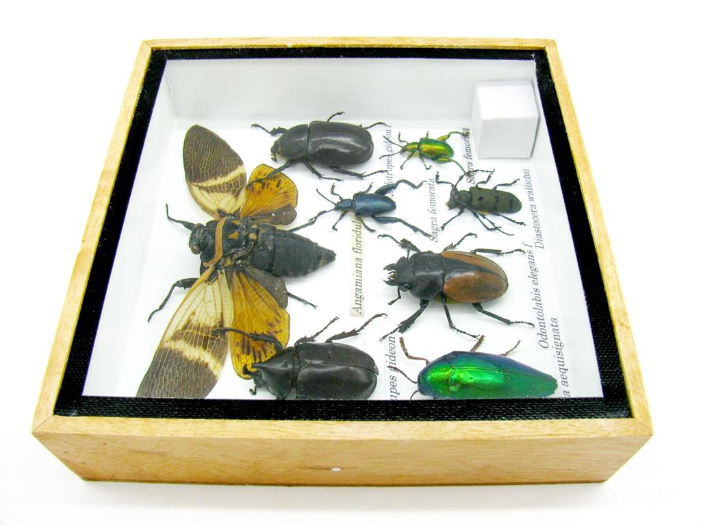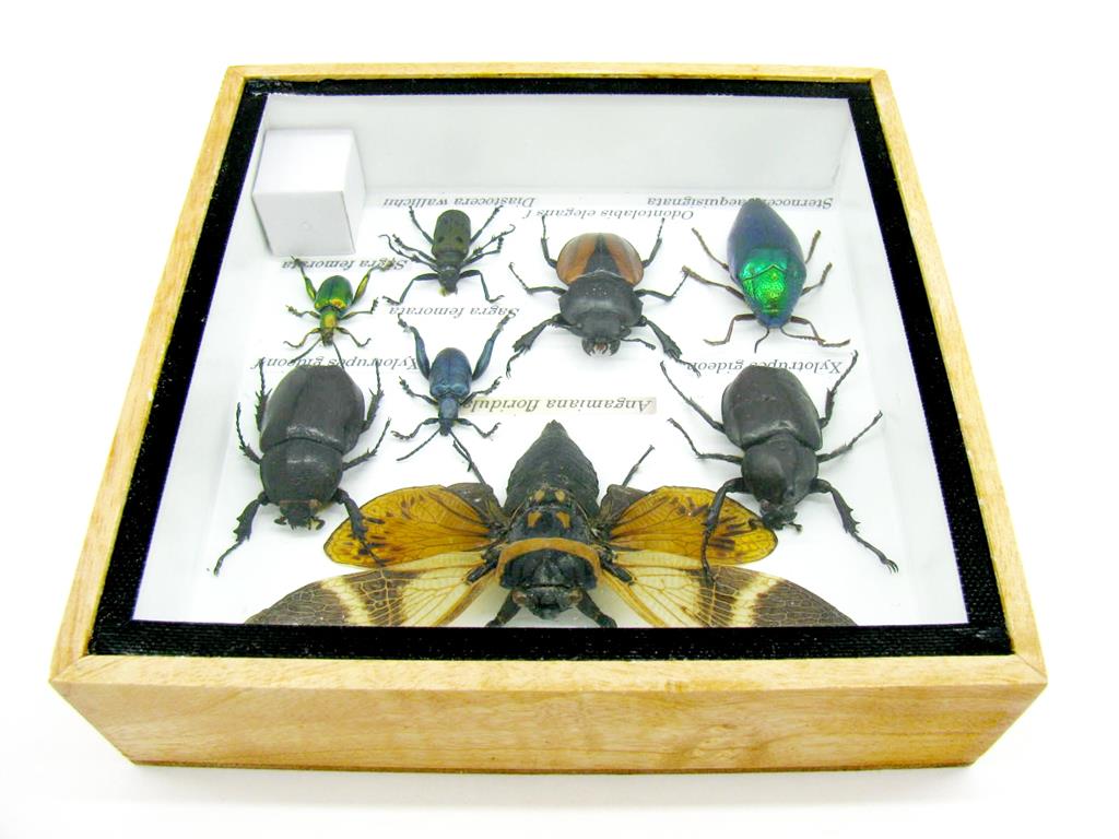 Echte exotische Insekten – einmalig – im Schaukasten aus Holz und Glas s06
