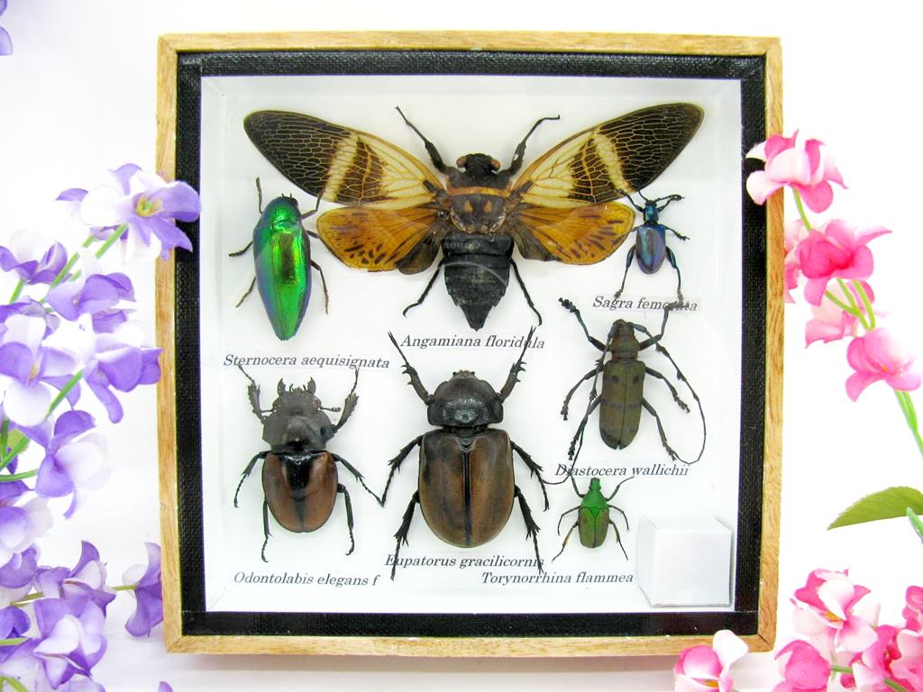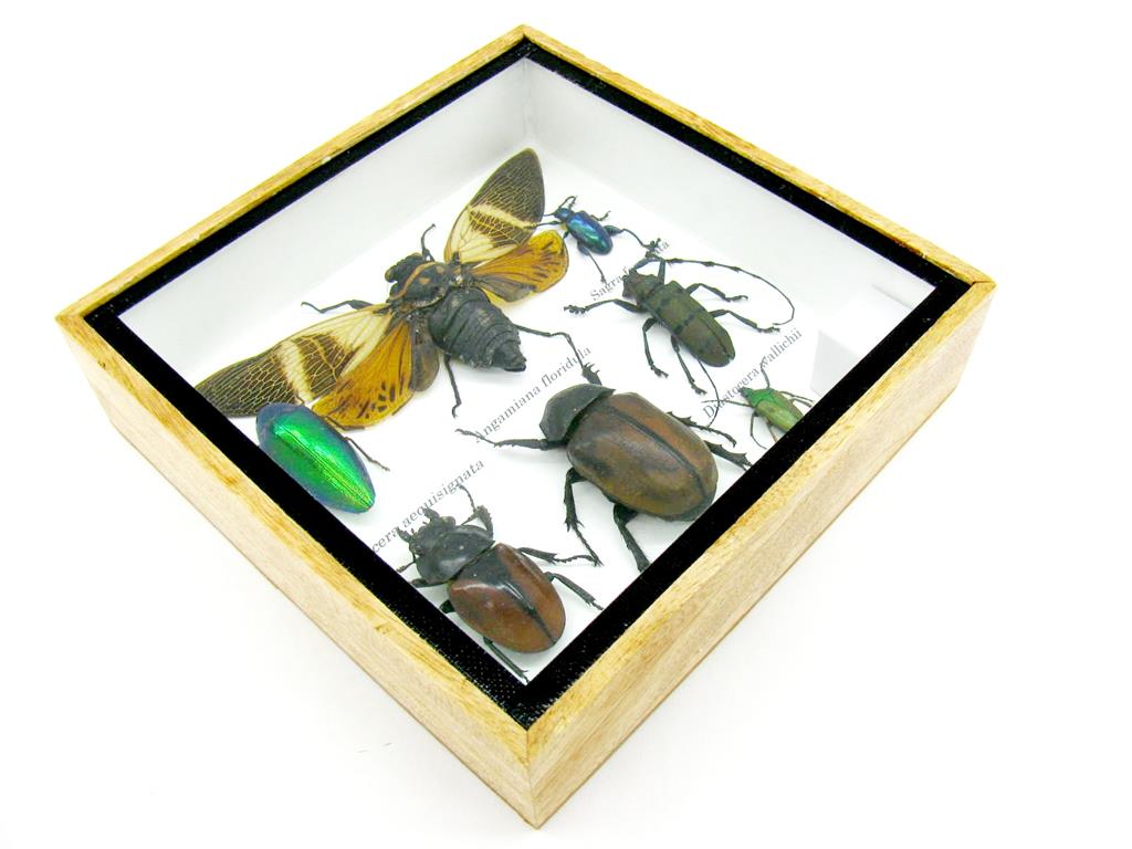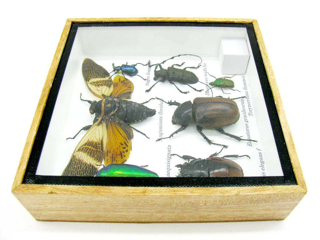 Echte exotische Insekten – einmalig – im Schaukasten aus Holz und Glas s13
