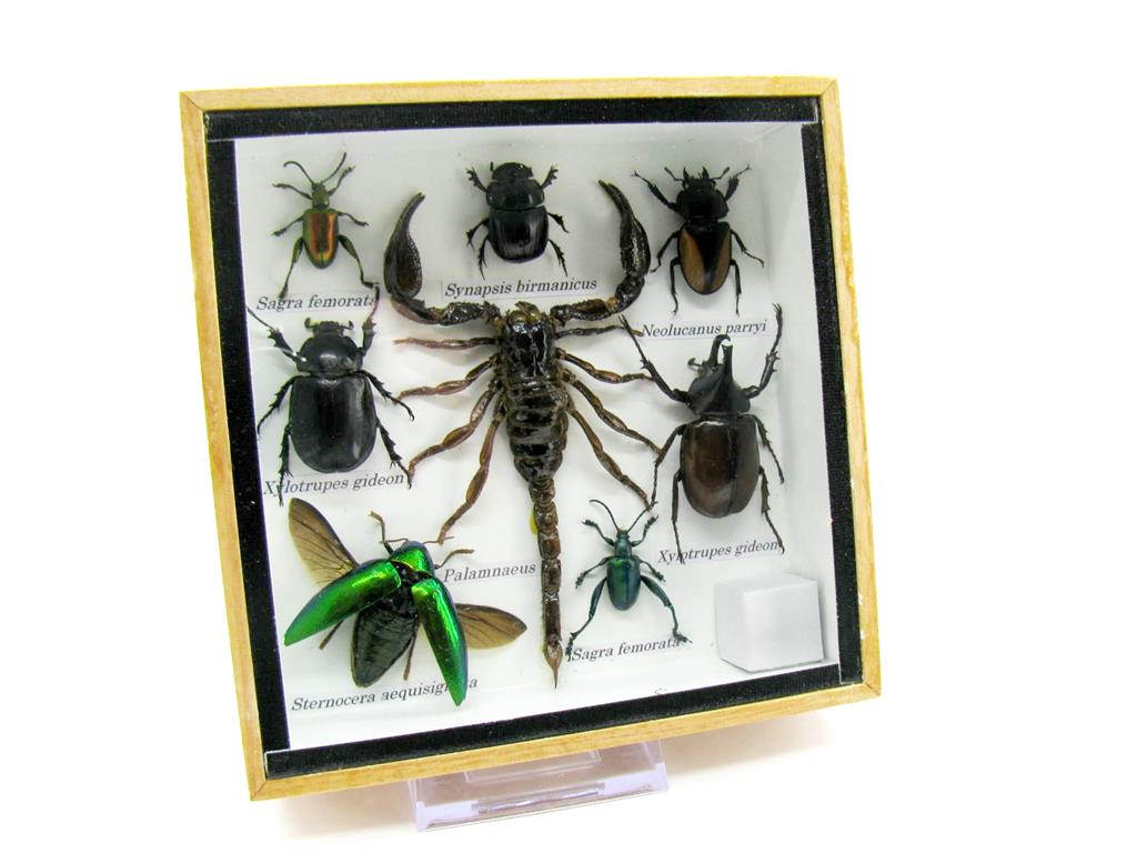 Echte exotische Insekten – einmalig – im Schaukasten aus Holz und Glas s23