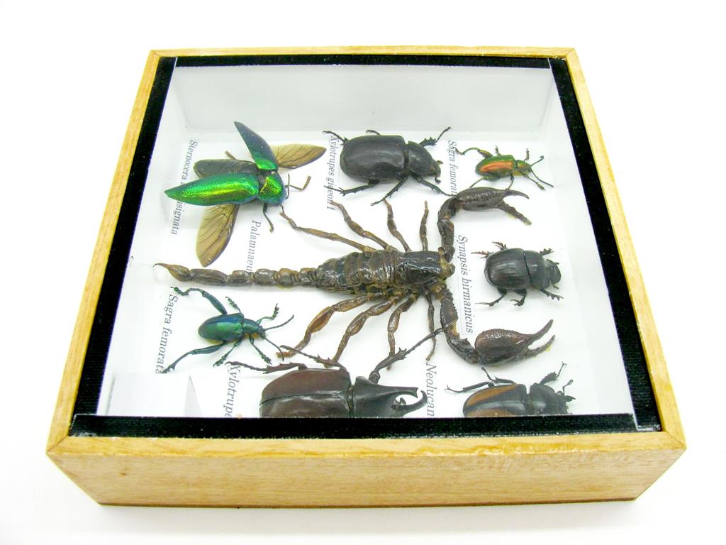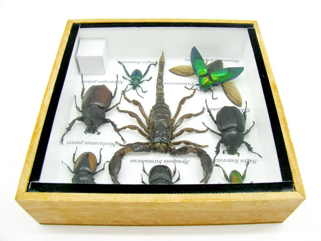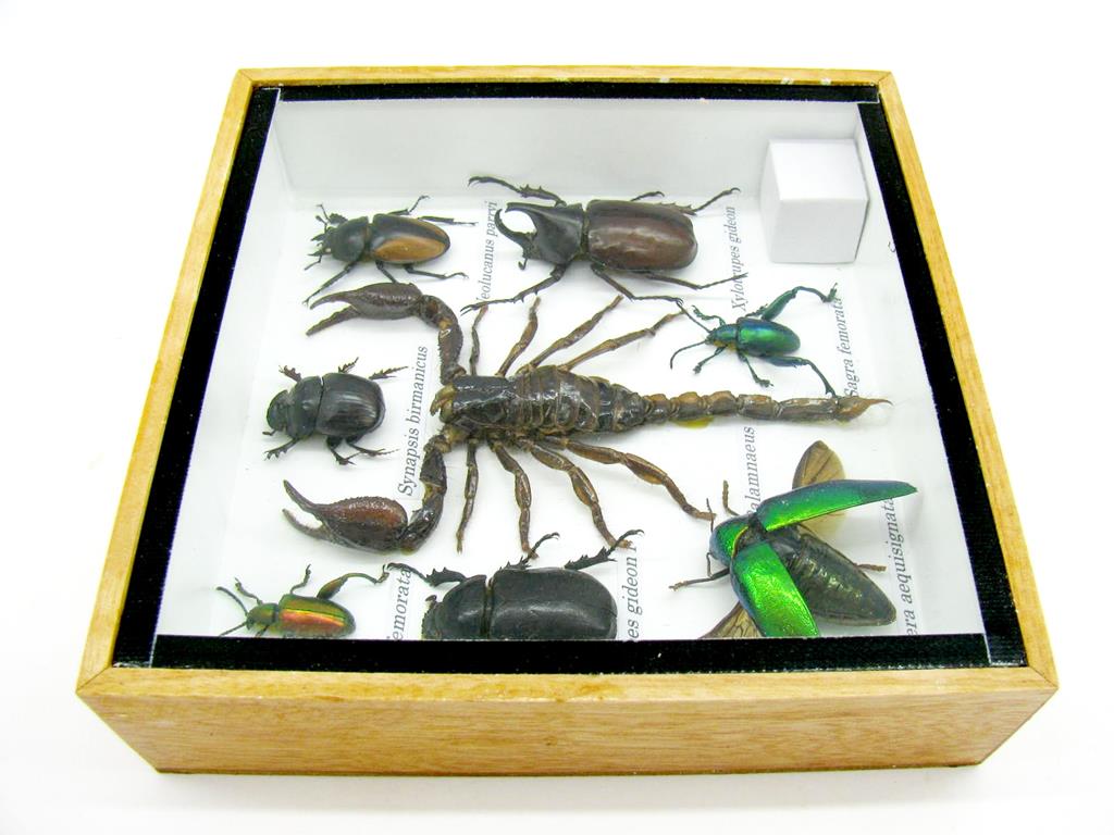 Echte exotische Insekten – einmalig – im Schaukasten aus Holz und Glas s18