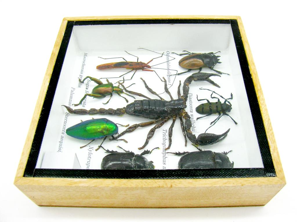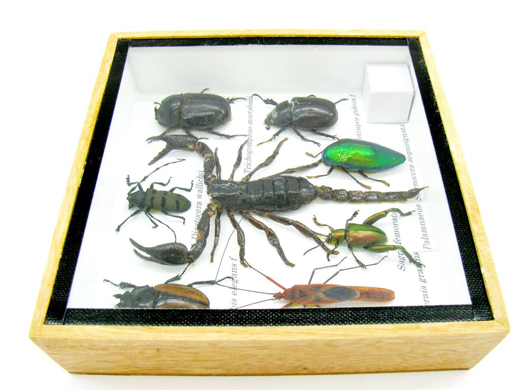 Echte exotische Insekten – einmalig – im Schaukasten aus Holz und Glas s02