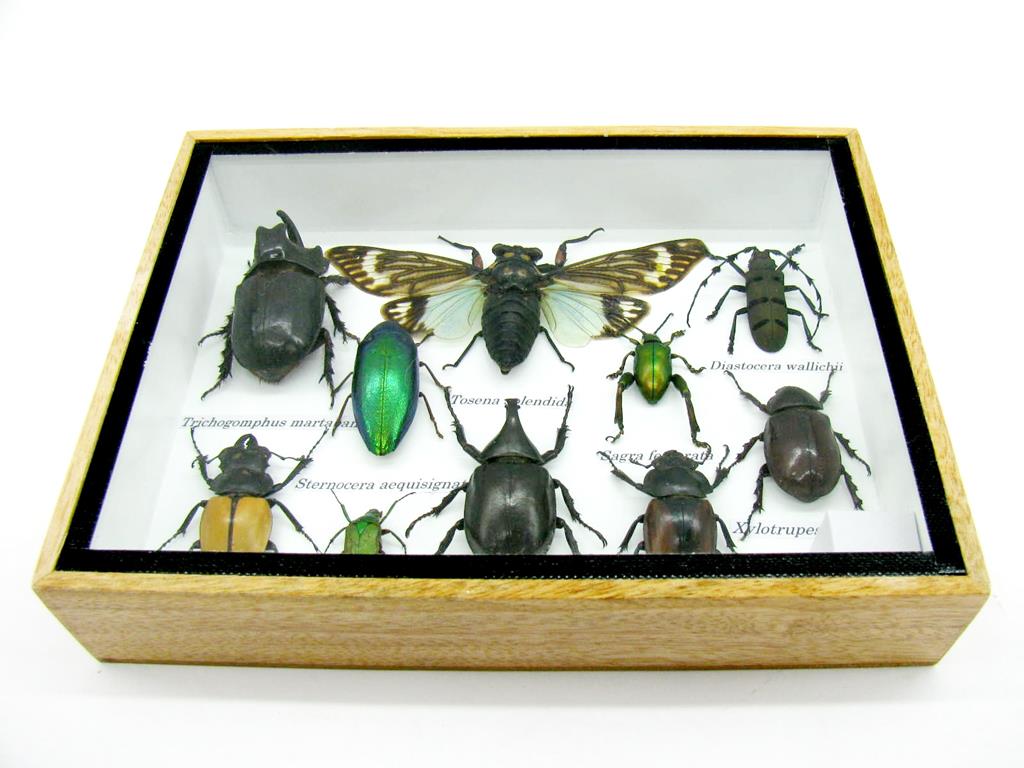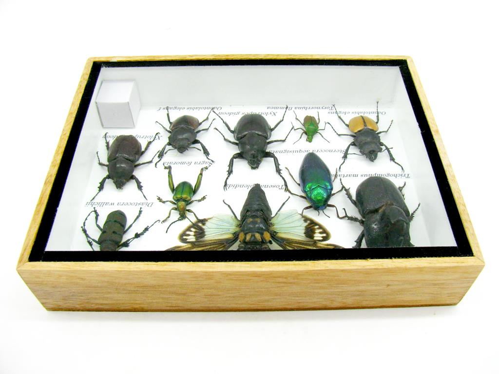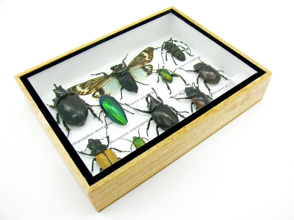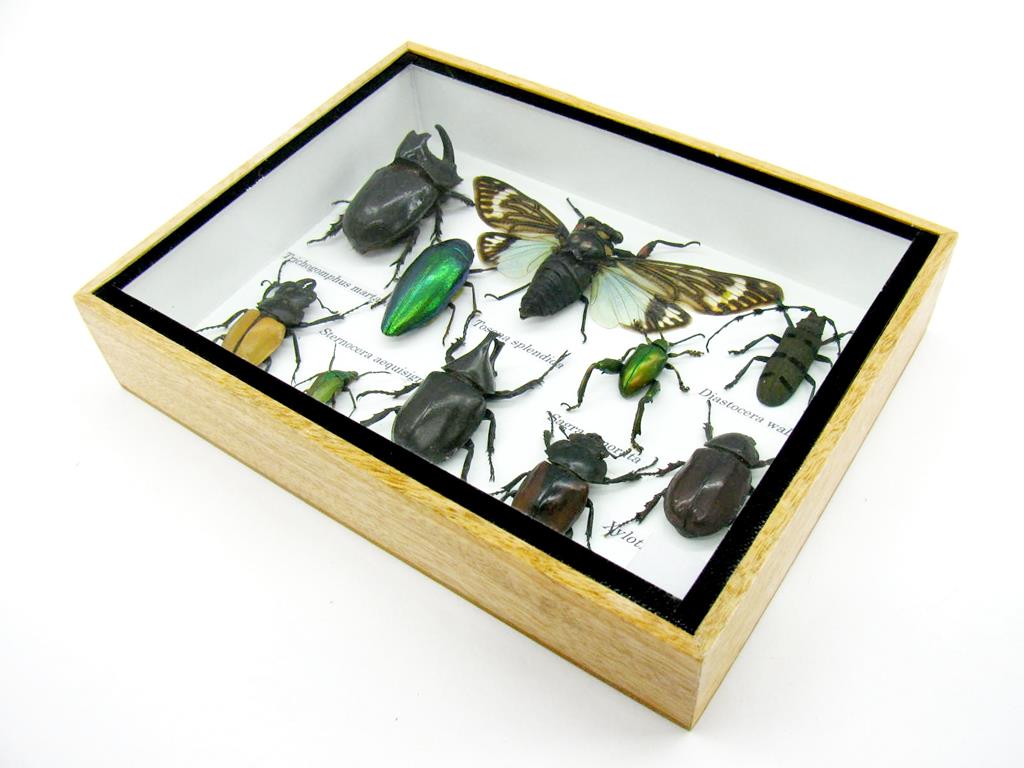 Echte exotische Insekten im Schaukasten aus Holz und Glas m-10