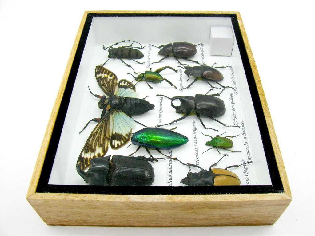 Echte exotische Insekten im Schaukasten aus Holz und Glas m-08