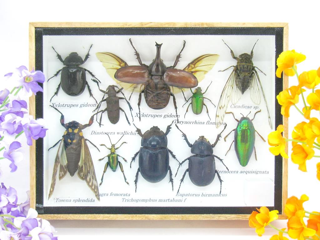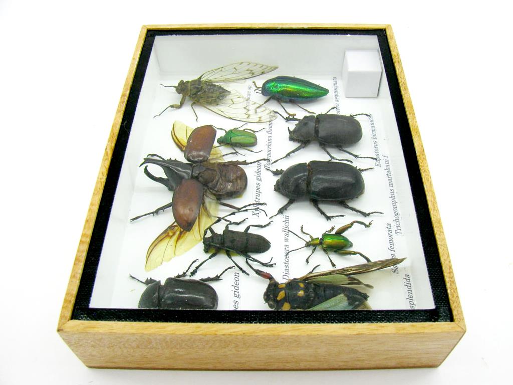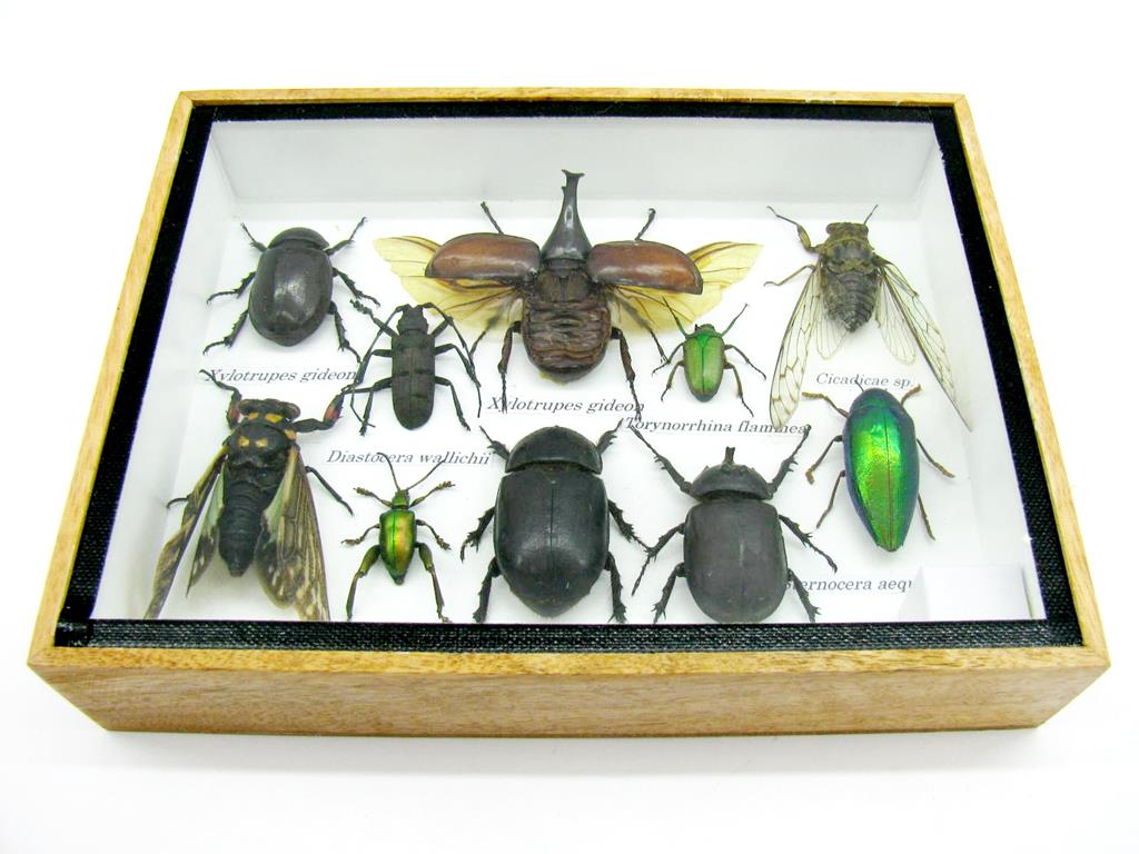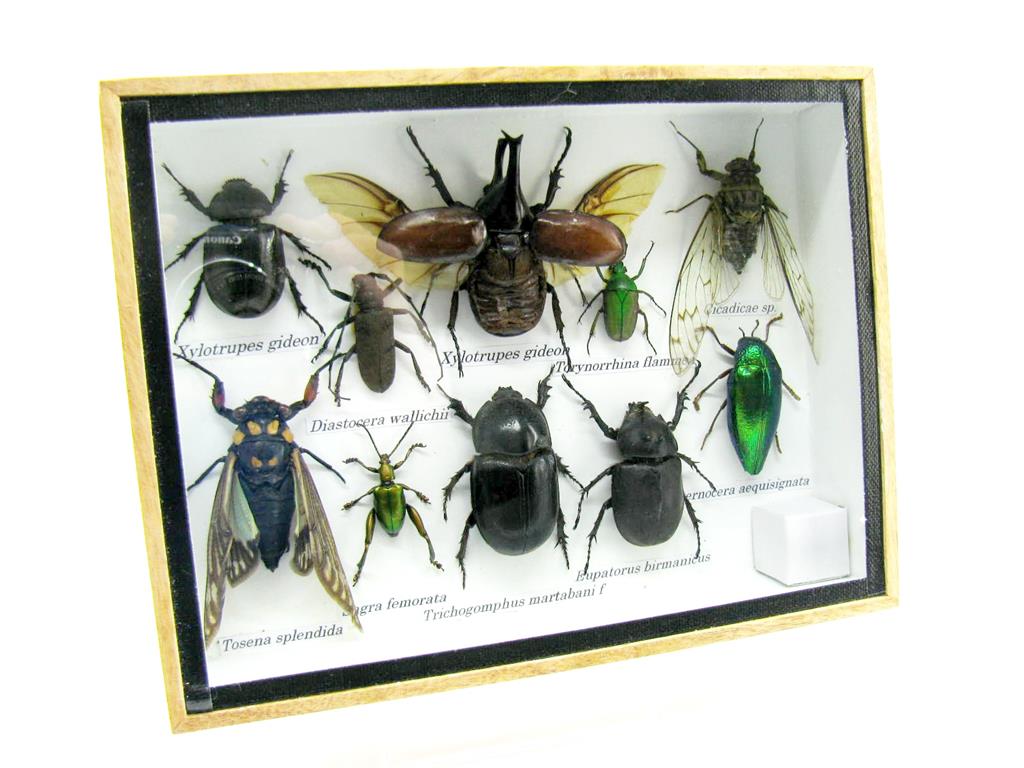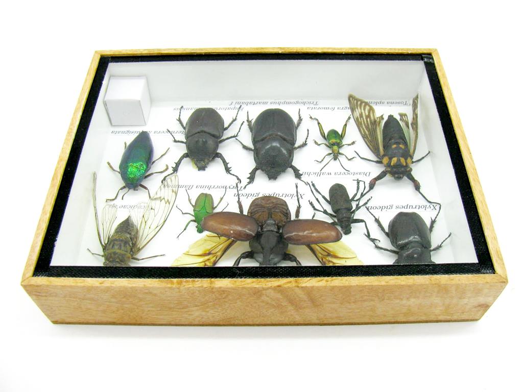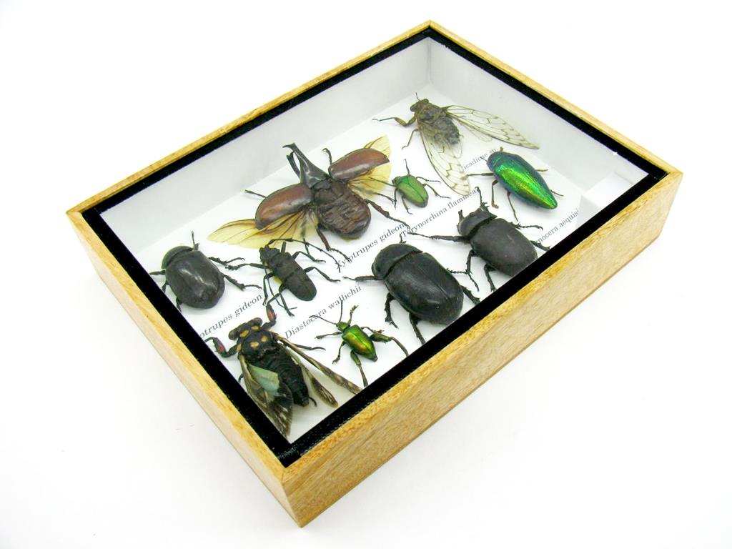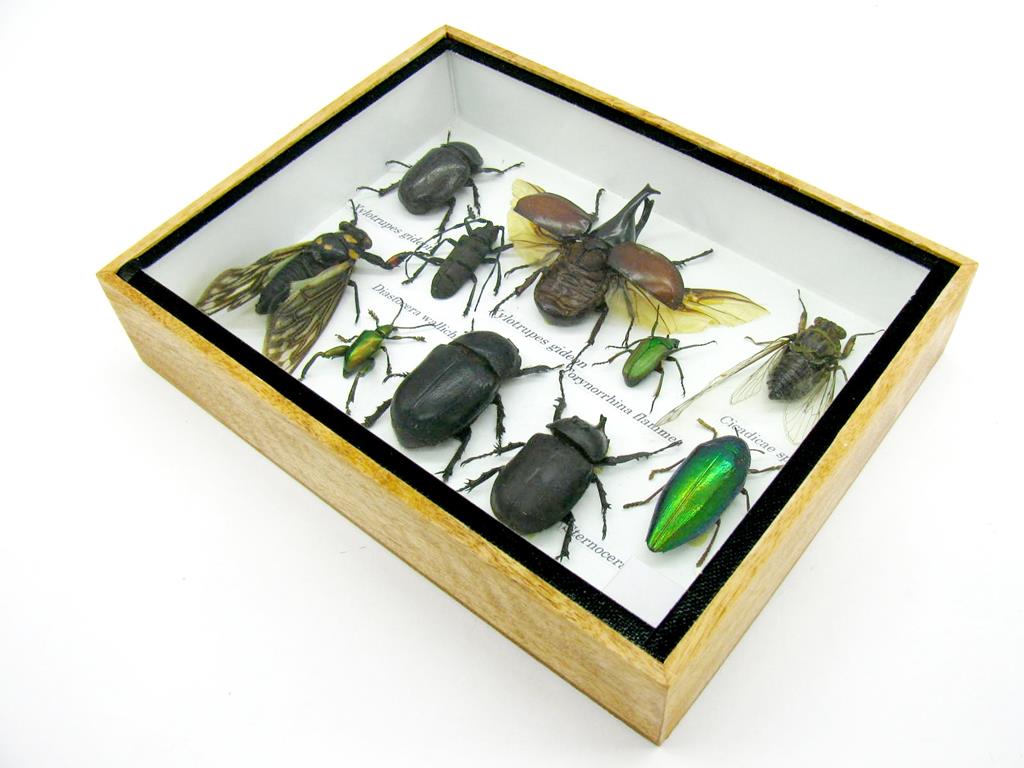 Echte exotische Insekten im Schaukasten aus Holz und Glas m-12