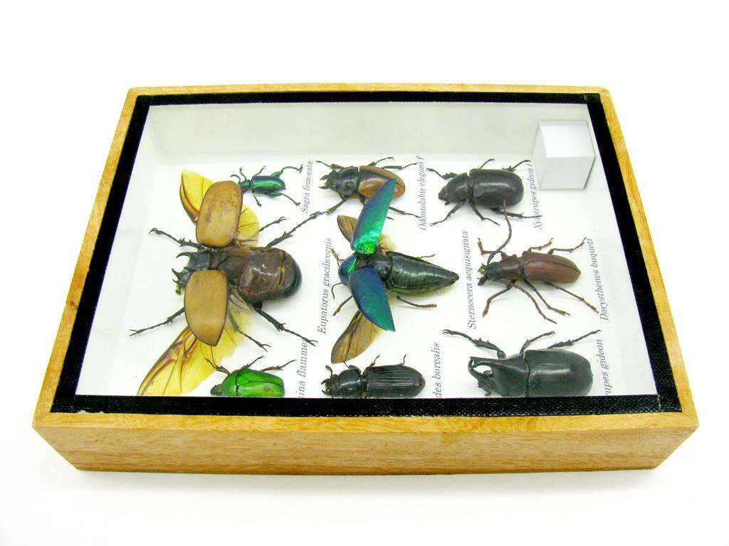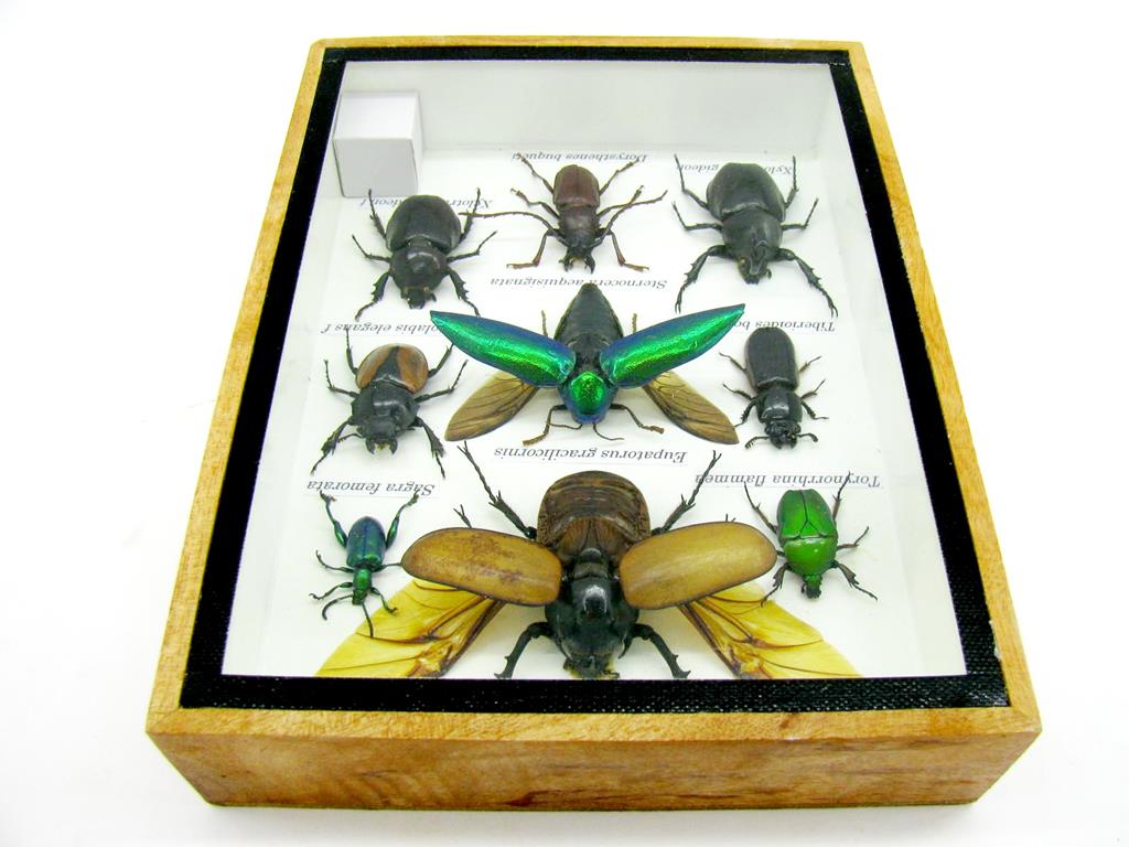 Echte exotische Insekten im Schaukasten aus Holz und Glas m-13