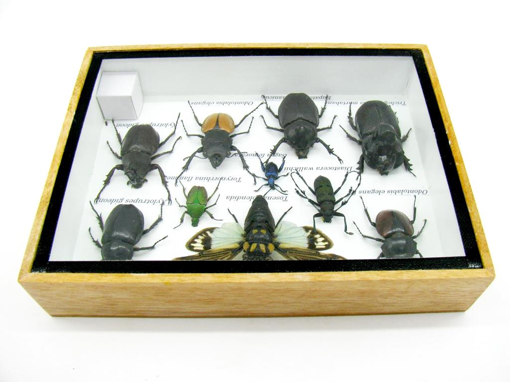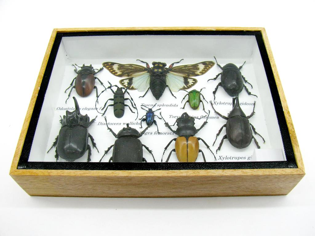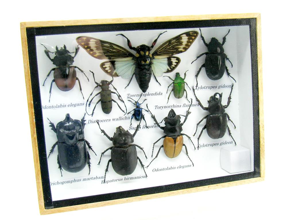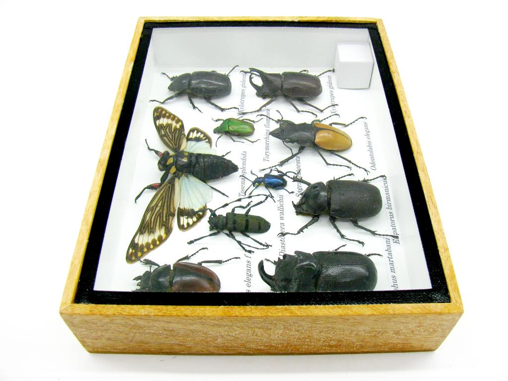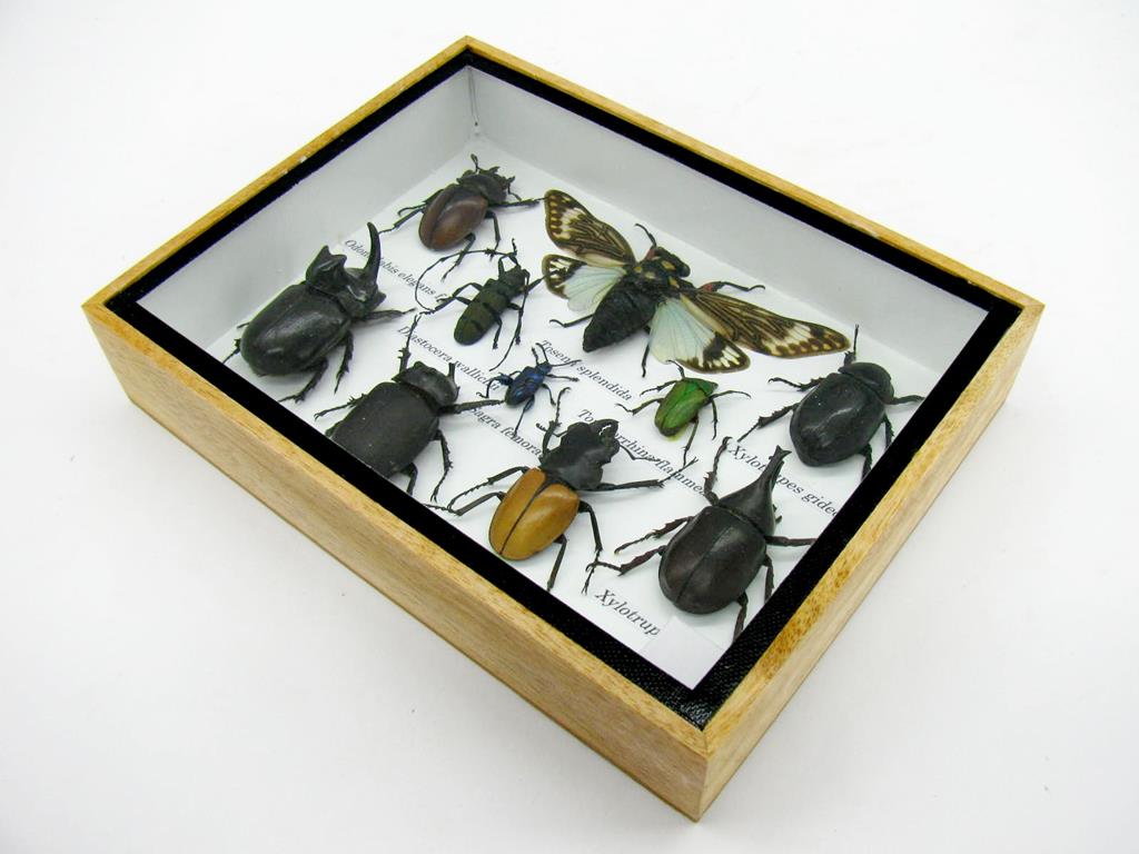 Echte exotische Insekten im Schaukasten aus Holz und Glas m-12