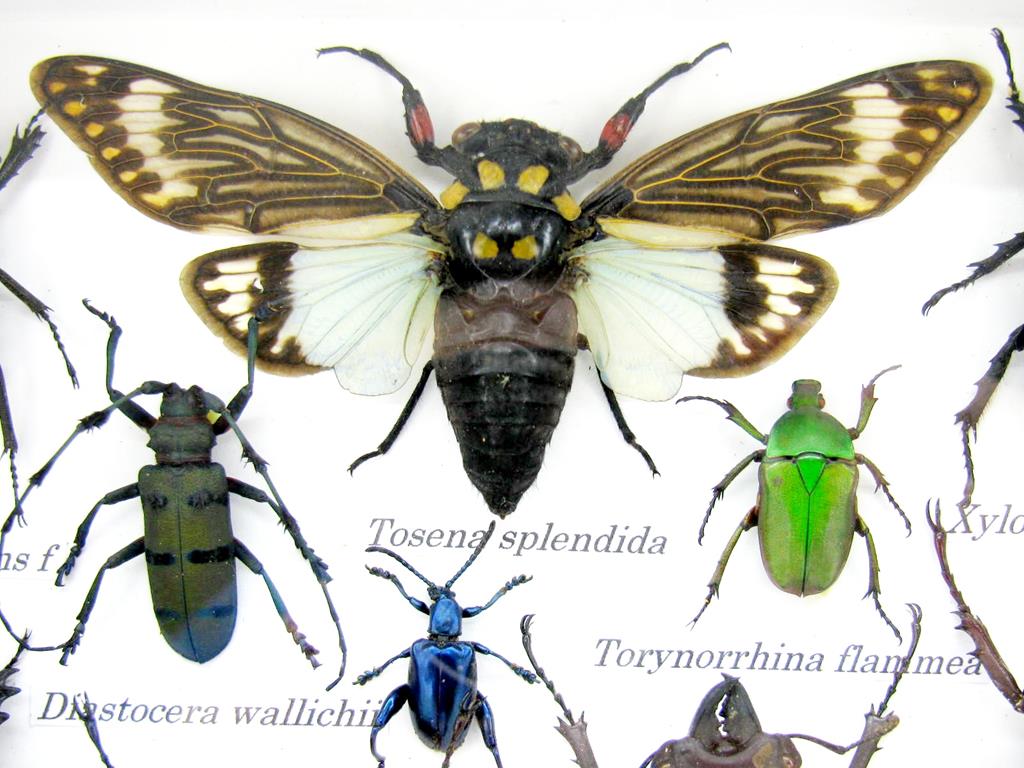 Echte exotische Insekten – einmalig – im mittelgroßem Schaukasten – Wandbild m31