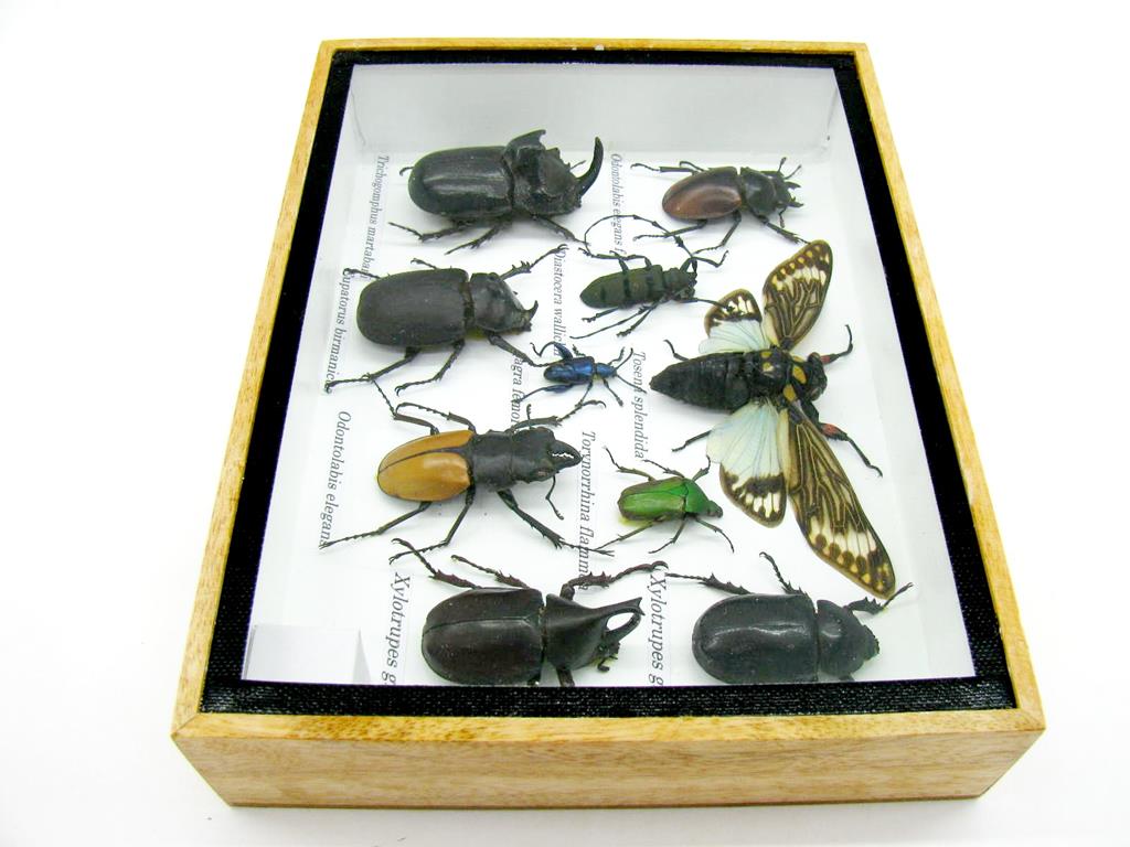 Echte exotische Insekten im Schaukasten aus Holz und Glas m-14