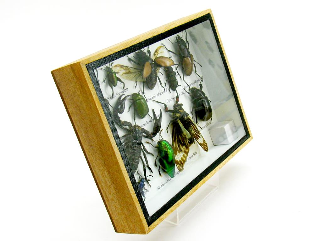 Echte exotische Insekten – einmalig – im mittelgroßem Schaukasten – Wandbild m32